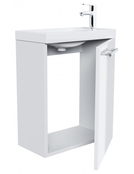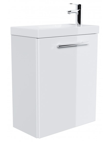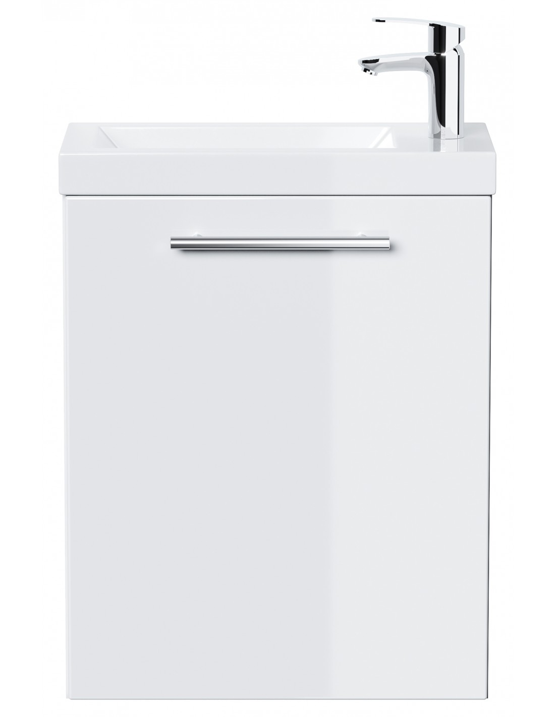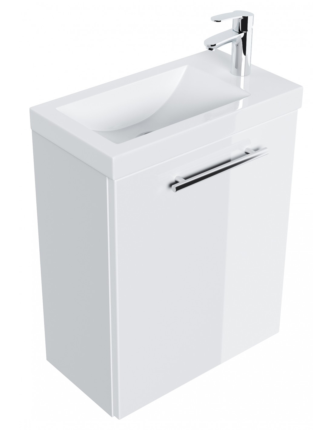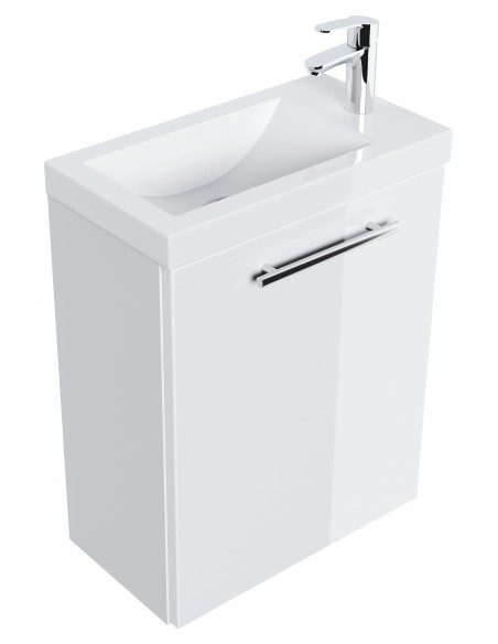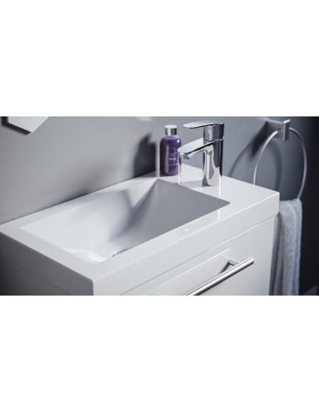 Komplet badmiljø med spejl i mdf og mineralsten H50,5 x B40 cm - Hvid højglans