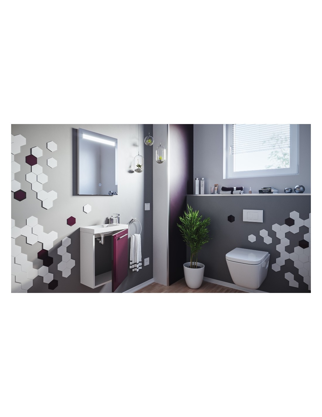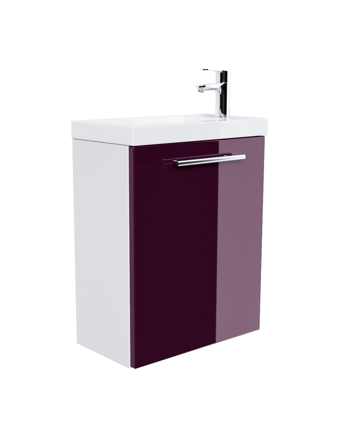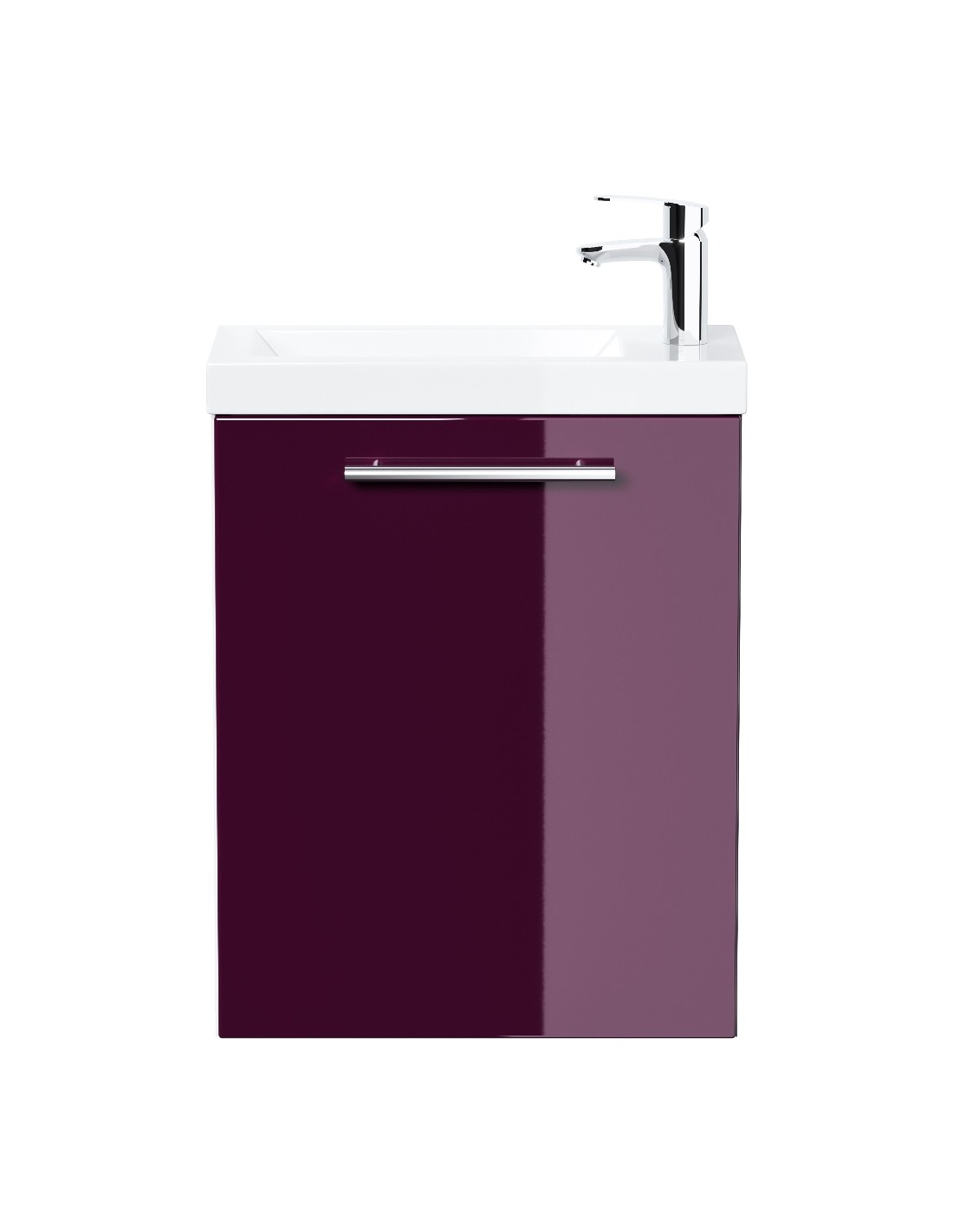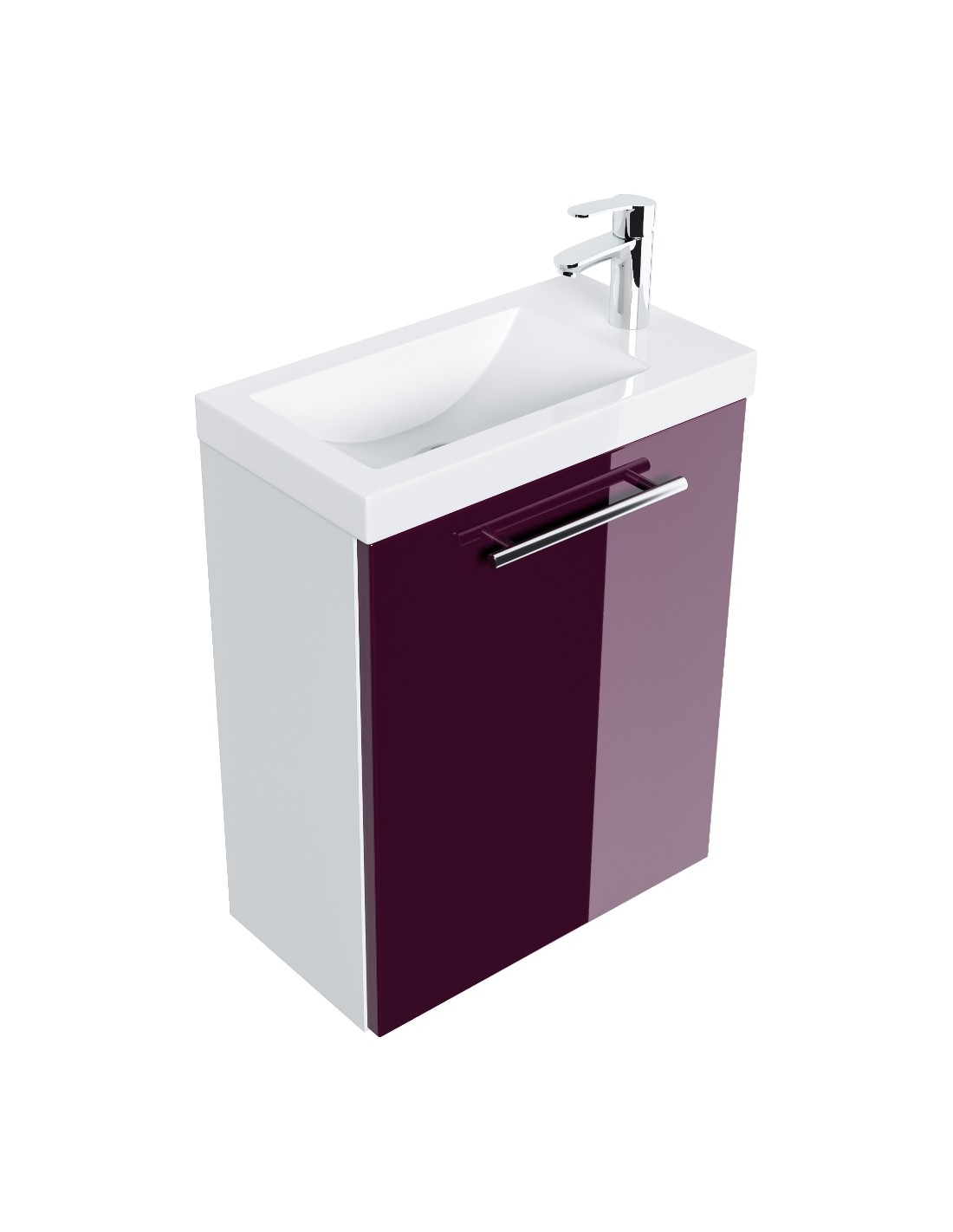 Komplet badmiljø med spejl i mdf og mineralsten H50,5 x B40 cm - Hvid højglans/Brombær højglans
