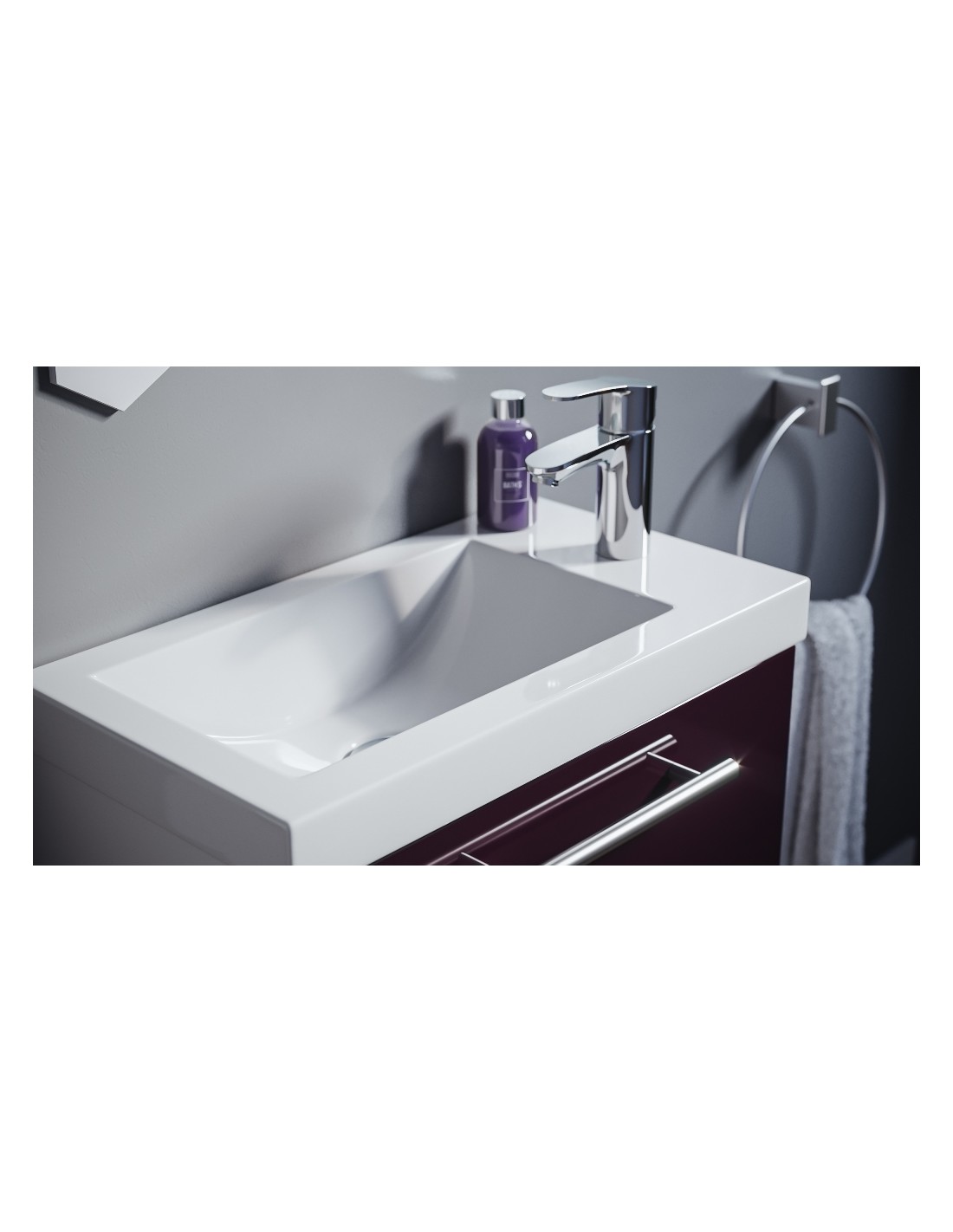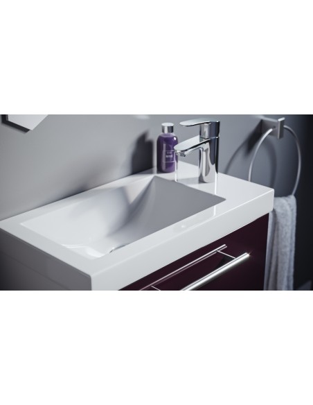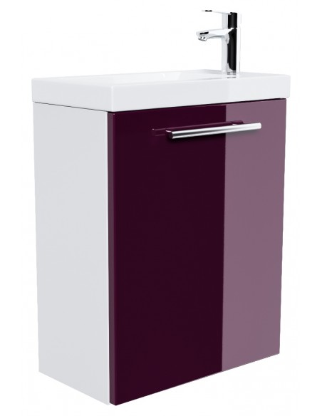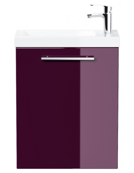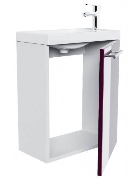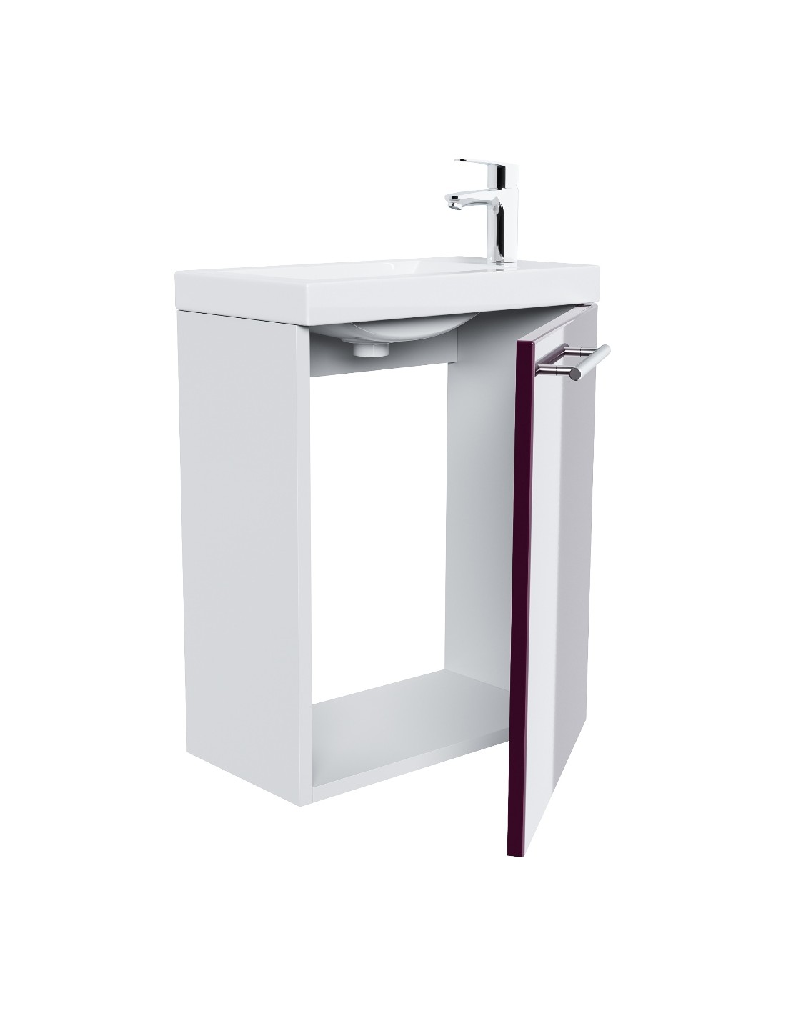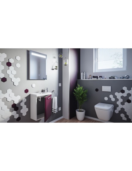 Komplet badmiljø med spejl i mdf og mineralsten H50,5 x B40 cm - Hvid højglans/Brombær højglans