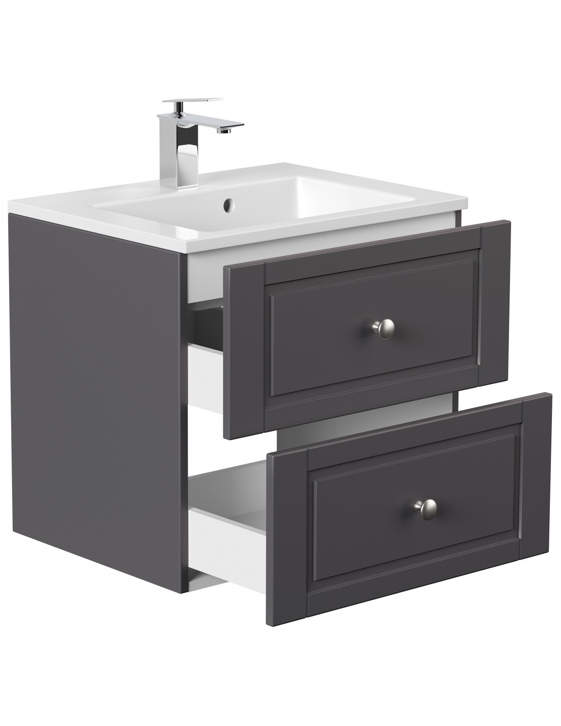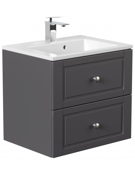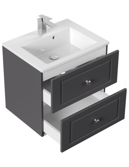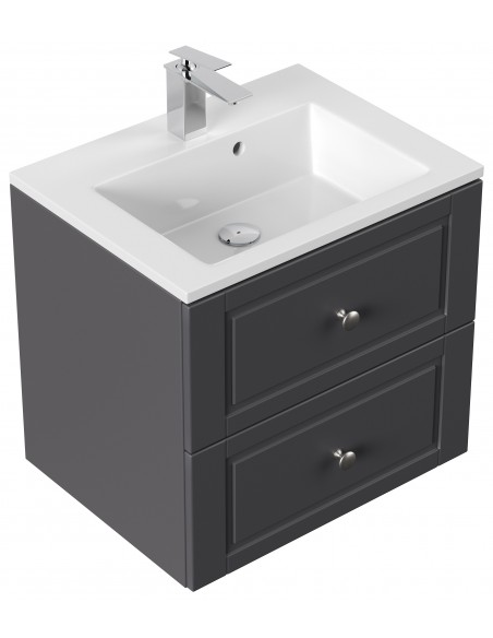 Homeline Cottage komplet badmiljø i mdf og mineralsten H55,6 x B61,5 cm - Antracit højglans