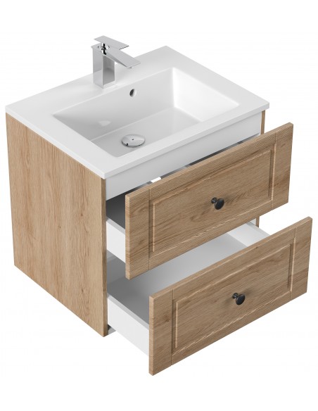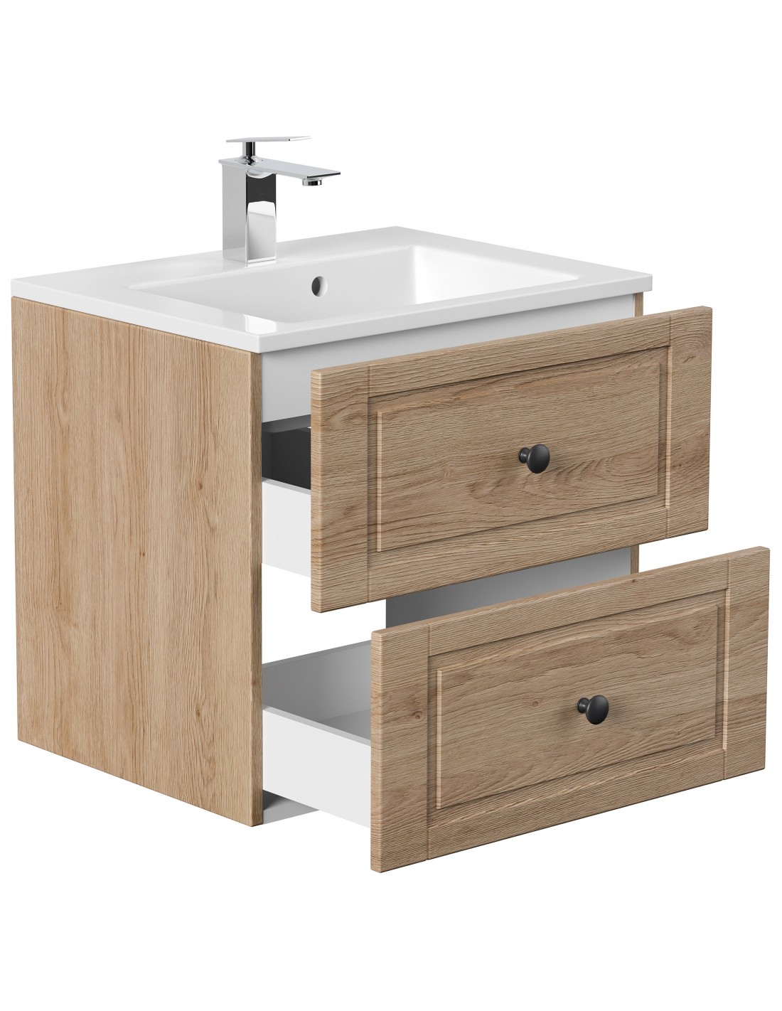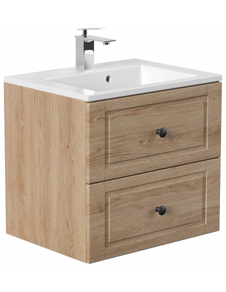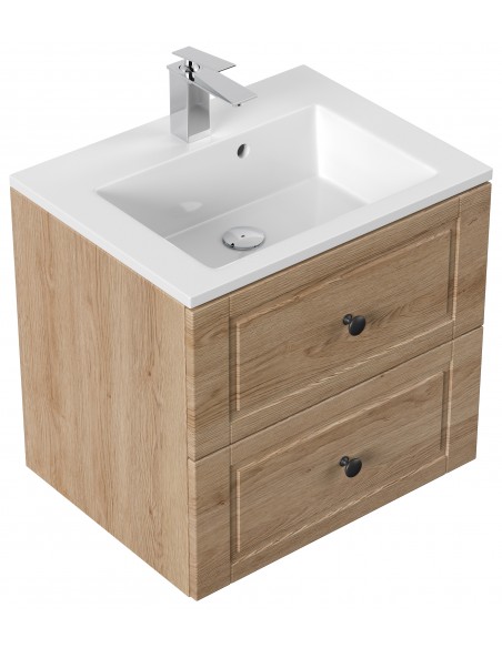Homeline Cottage komplet badmiljø i mdf og mineralsten H55,6 x B61,5 cm - Sonoma eg