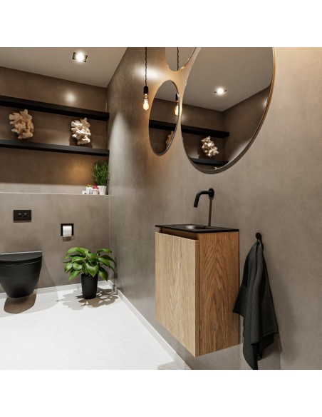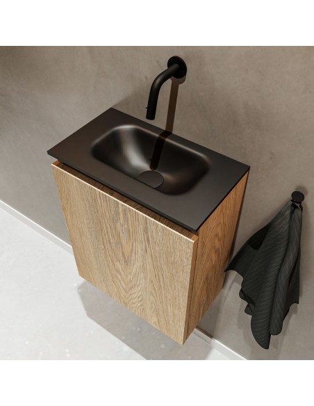 TURE Komplet badmiljø centreret håndvask B40 cm MDF - Vasket eg/Sort