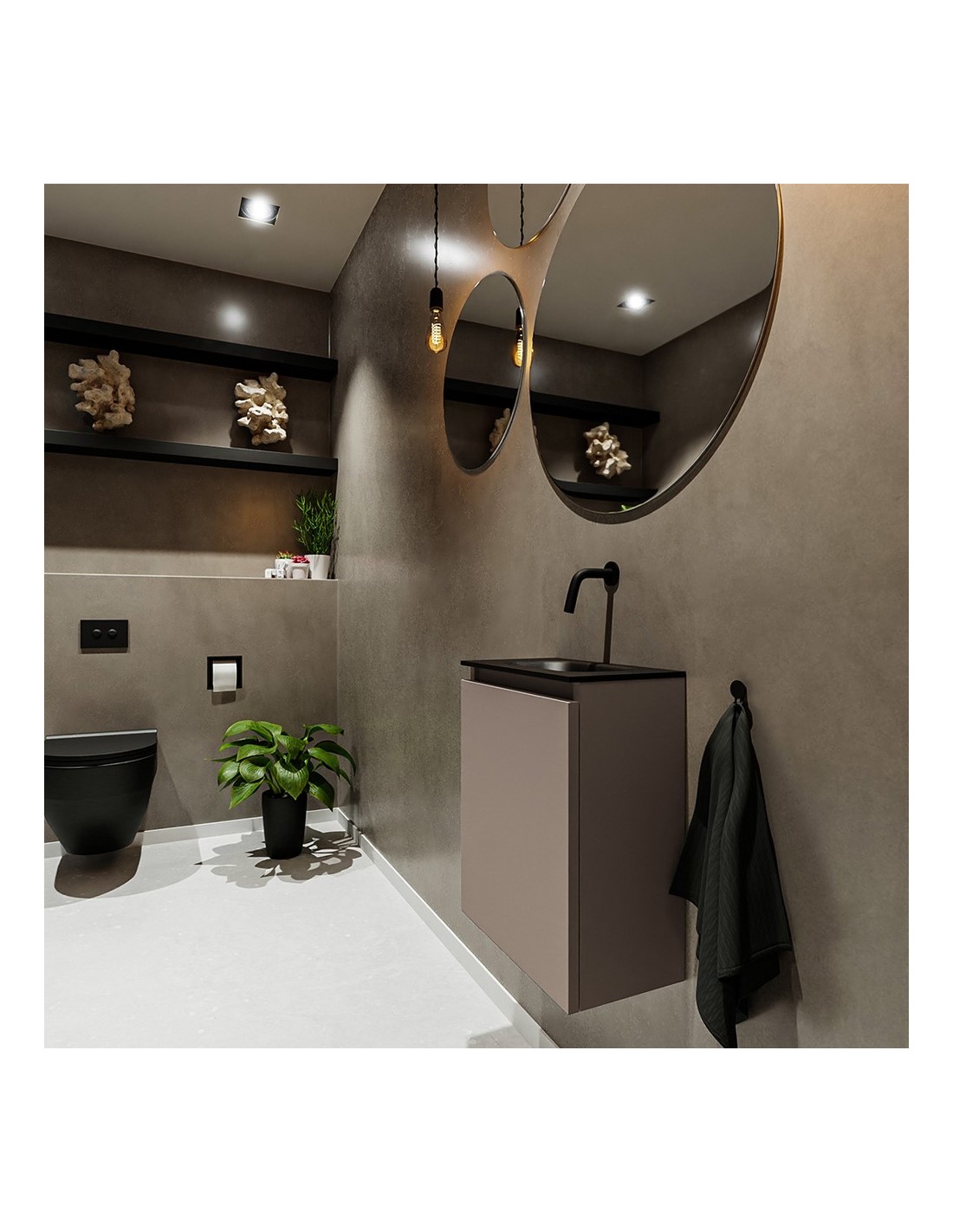 TURE Komplet badmiljø centreret håndvask B40 cm MDF - Røg/Sort