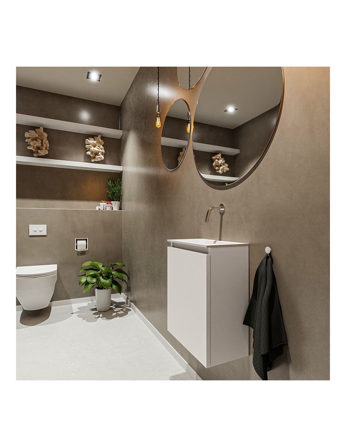 TURE Komplet badmiljø centreret håndvask B40 cm MDF - Linned/Talkum