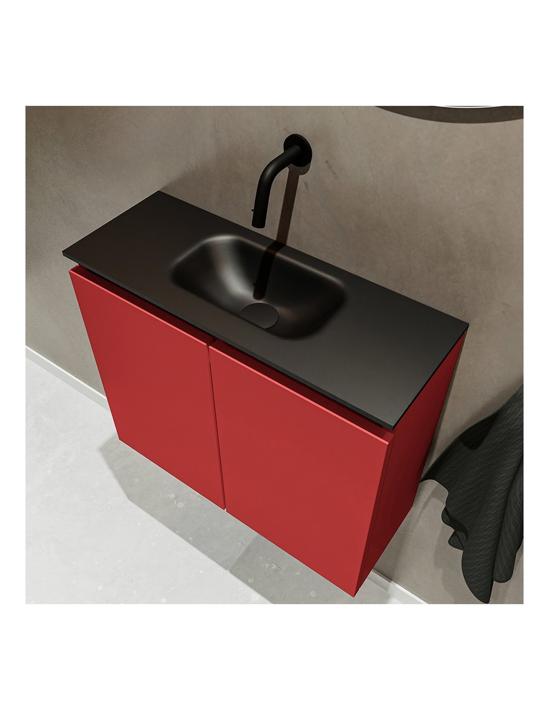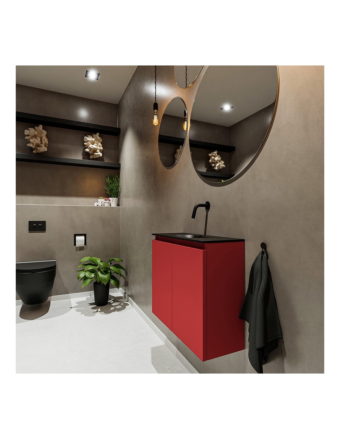 TURE Komplet badmiljø centreret håndvask B60 cm MDF - Rød/Sort
