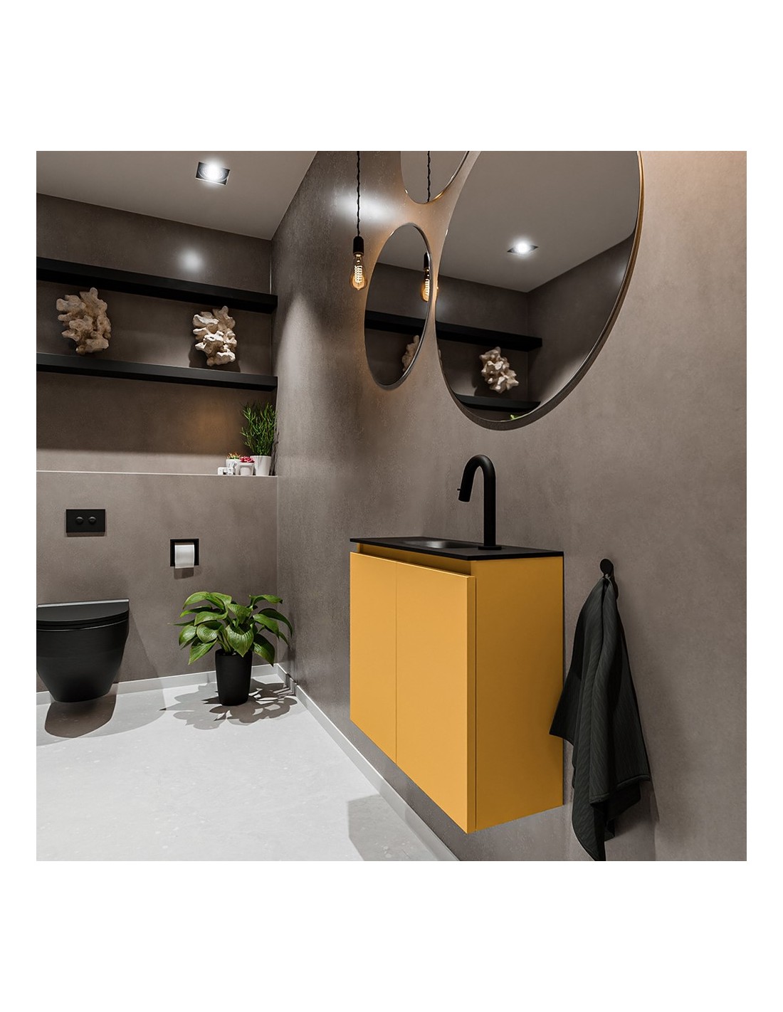 TURE Komplet badmiljø centreret håndvask B60 cm MDF - Okker/Sort