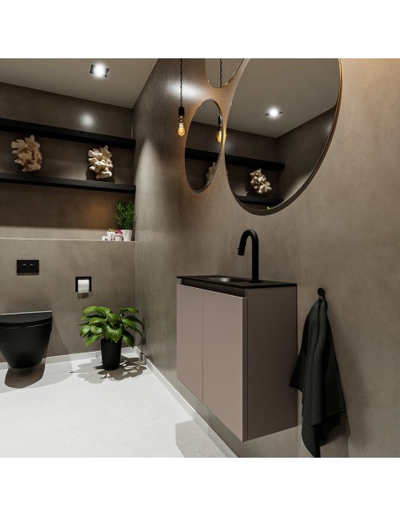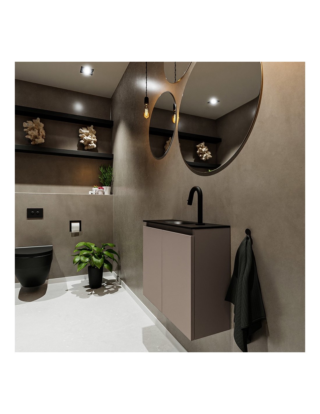 TURE Komplet badmiljø centreret håndvask B60 cm MDF - Røg/Sort