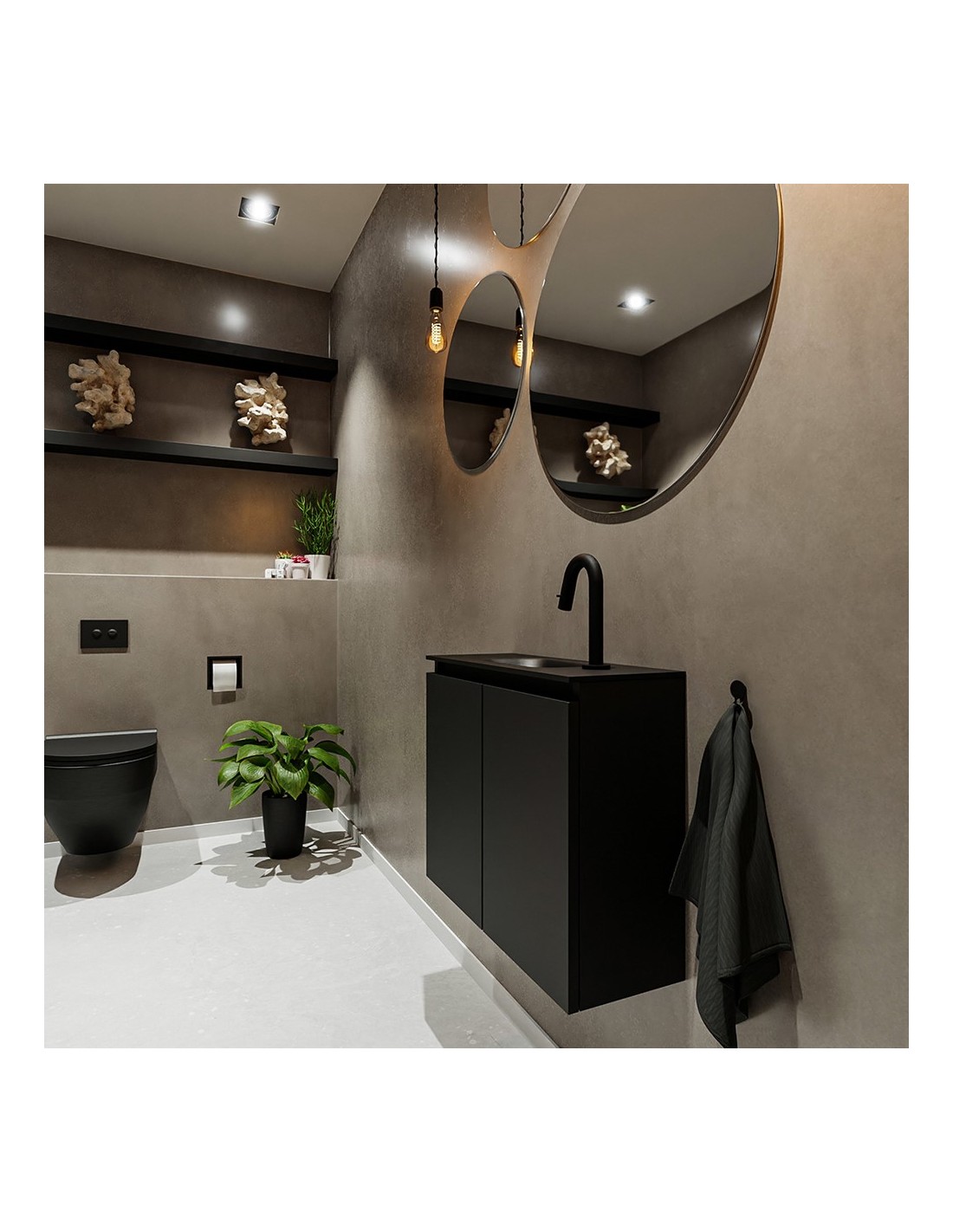 TURE Komplet badmiljø centreret håndvask B60 cm MDF - Sort/Sort