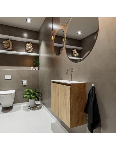 TURE Komplet badmiljø centreret håndvask B60 cm MDF - Vasket eg/Talkum