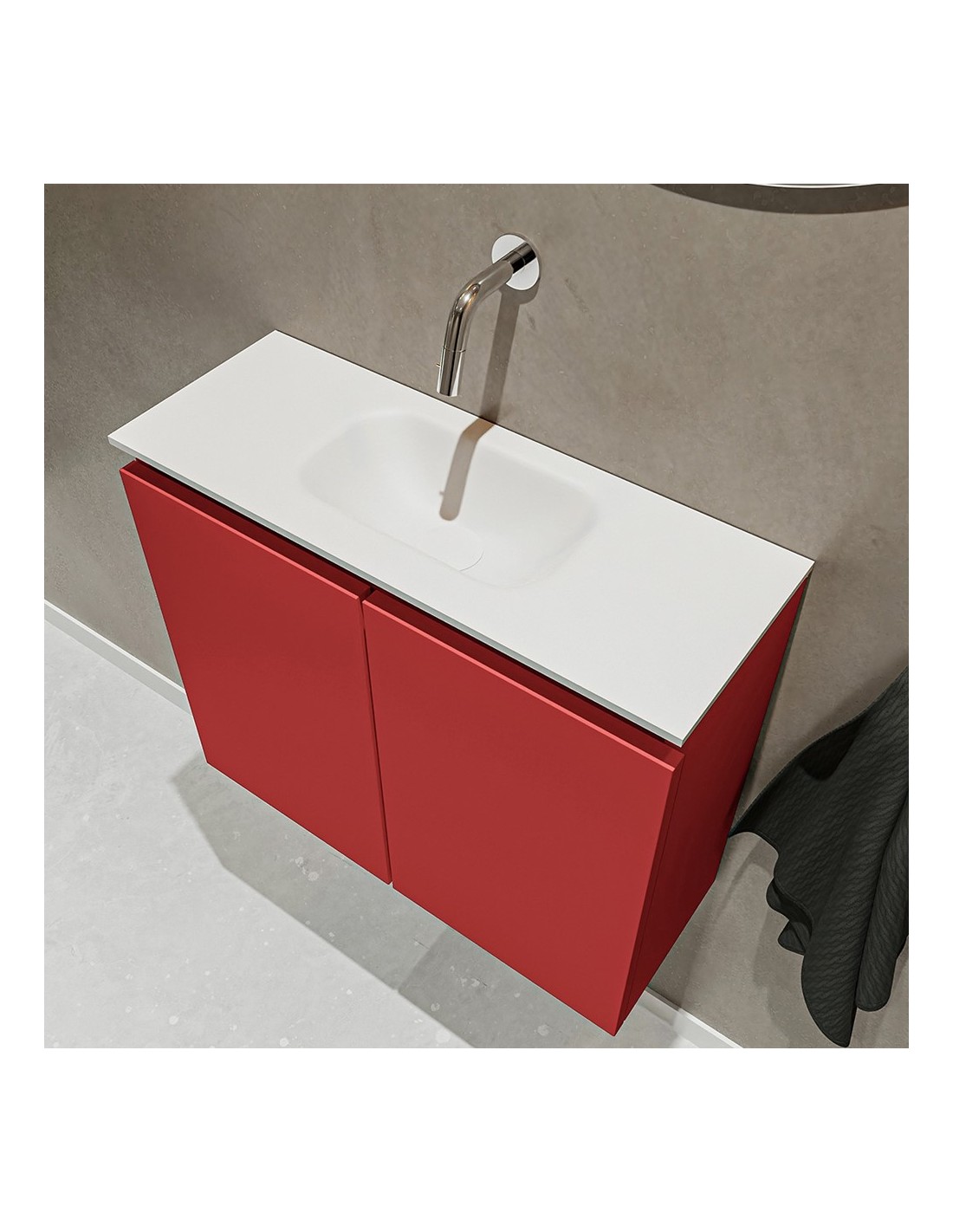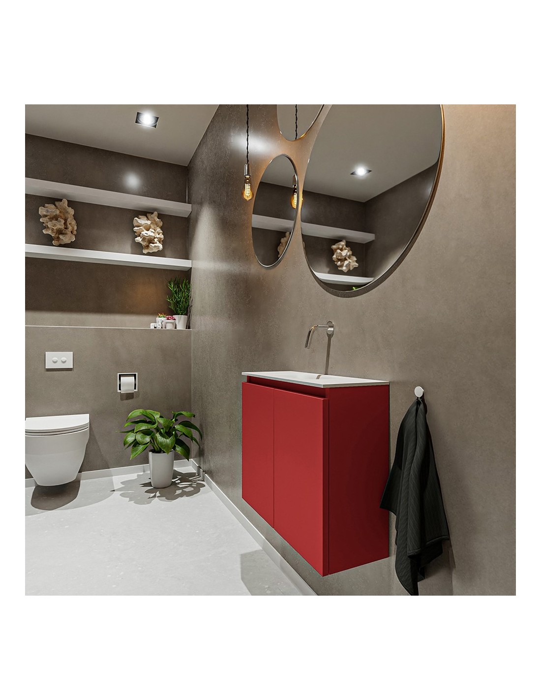 TURE Komplet badmiljø centreret håndvask B60 cm MDF - Rød/Talkum