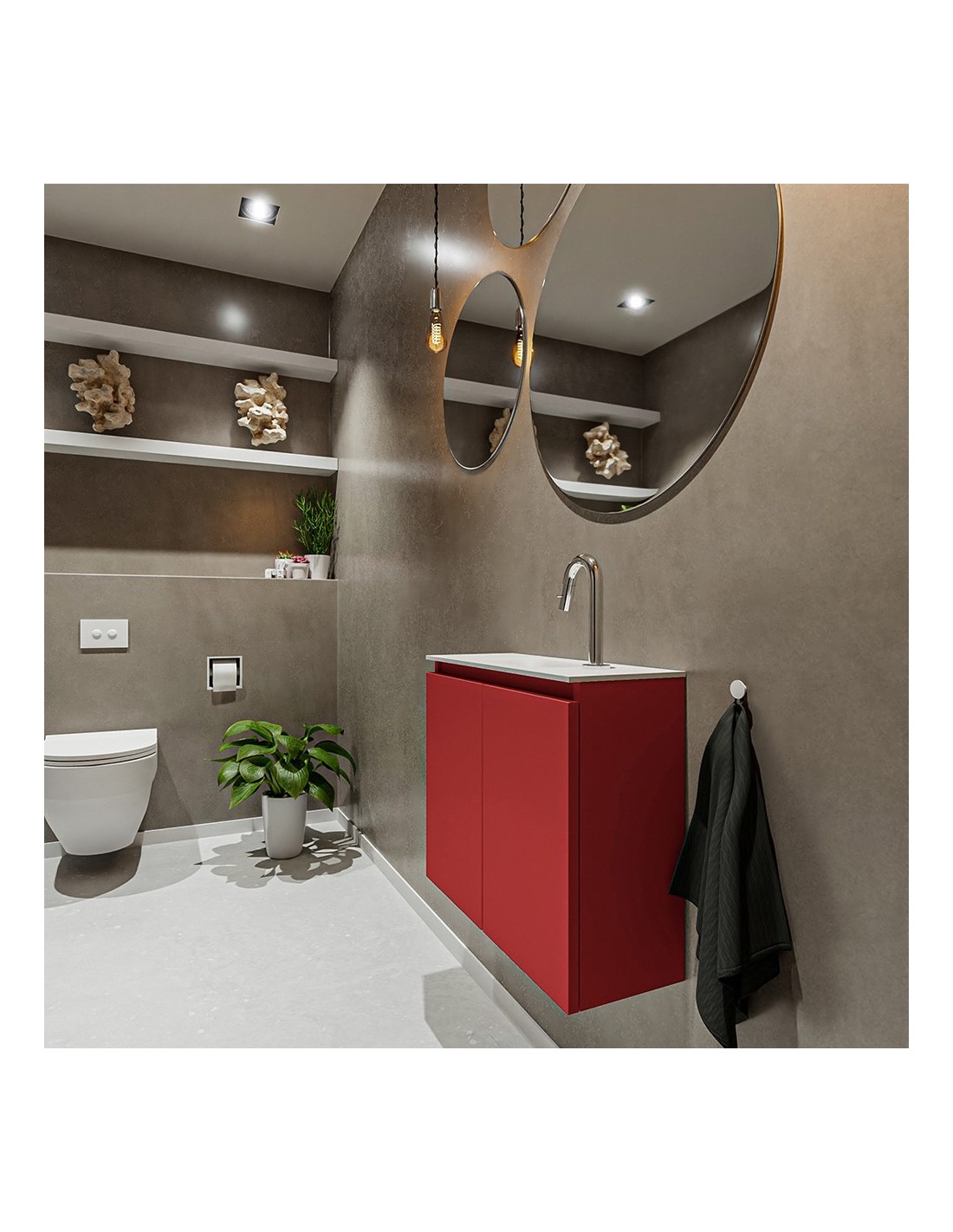 TURE Komplet badmiljø centreret håndvask B60 cm MDF - Rød/Talkum