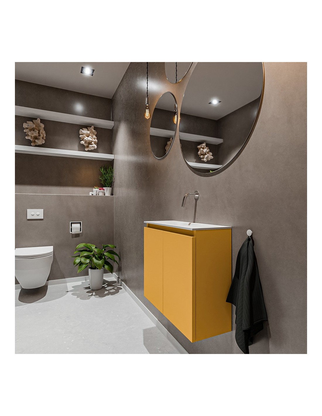 TURE Komplet badmiljø centreret håndvask B60 cm MDF - Okker/Talkum