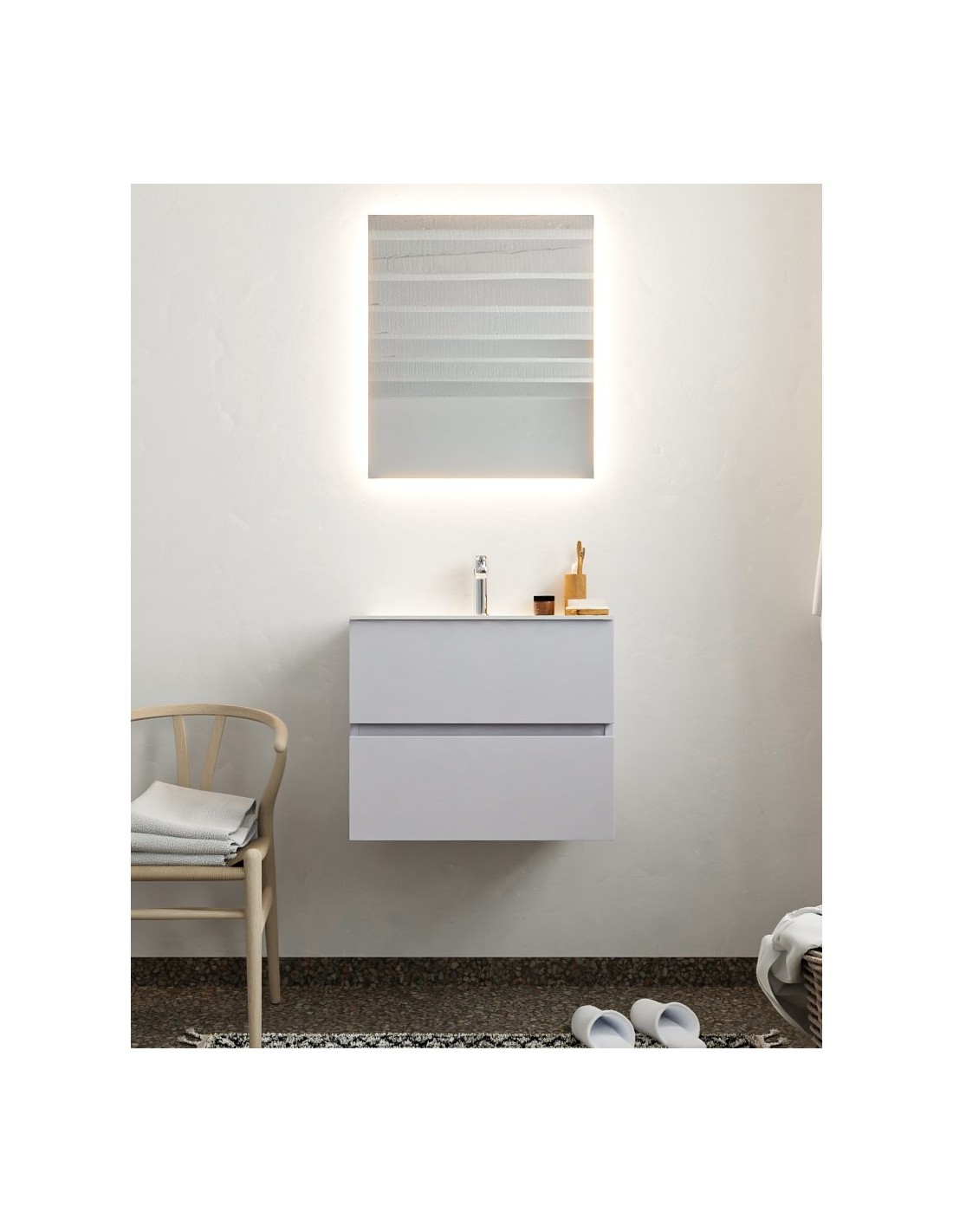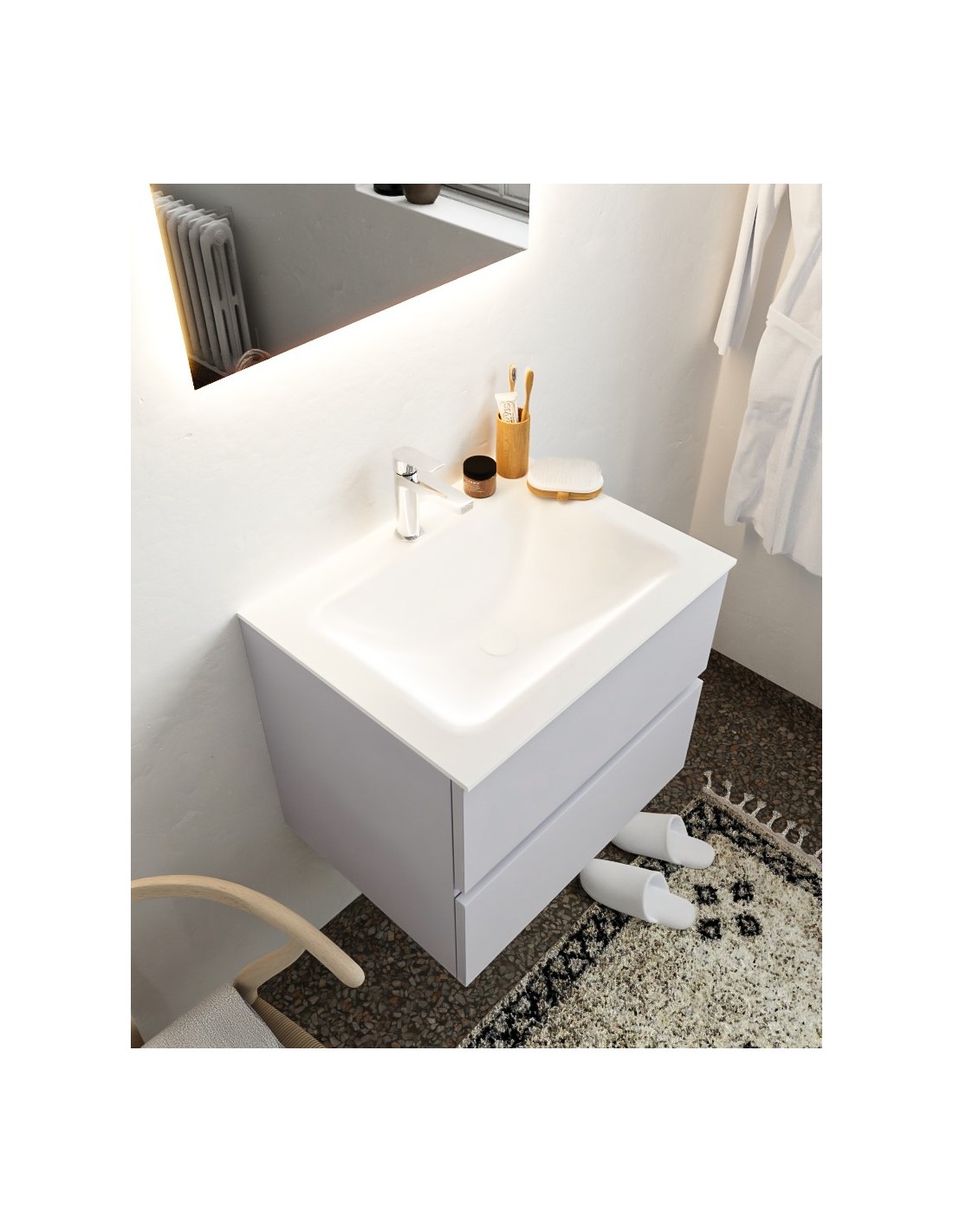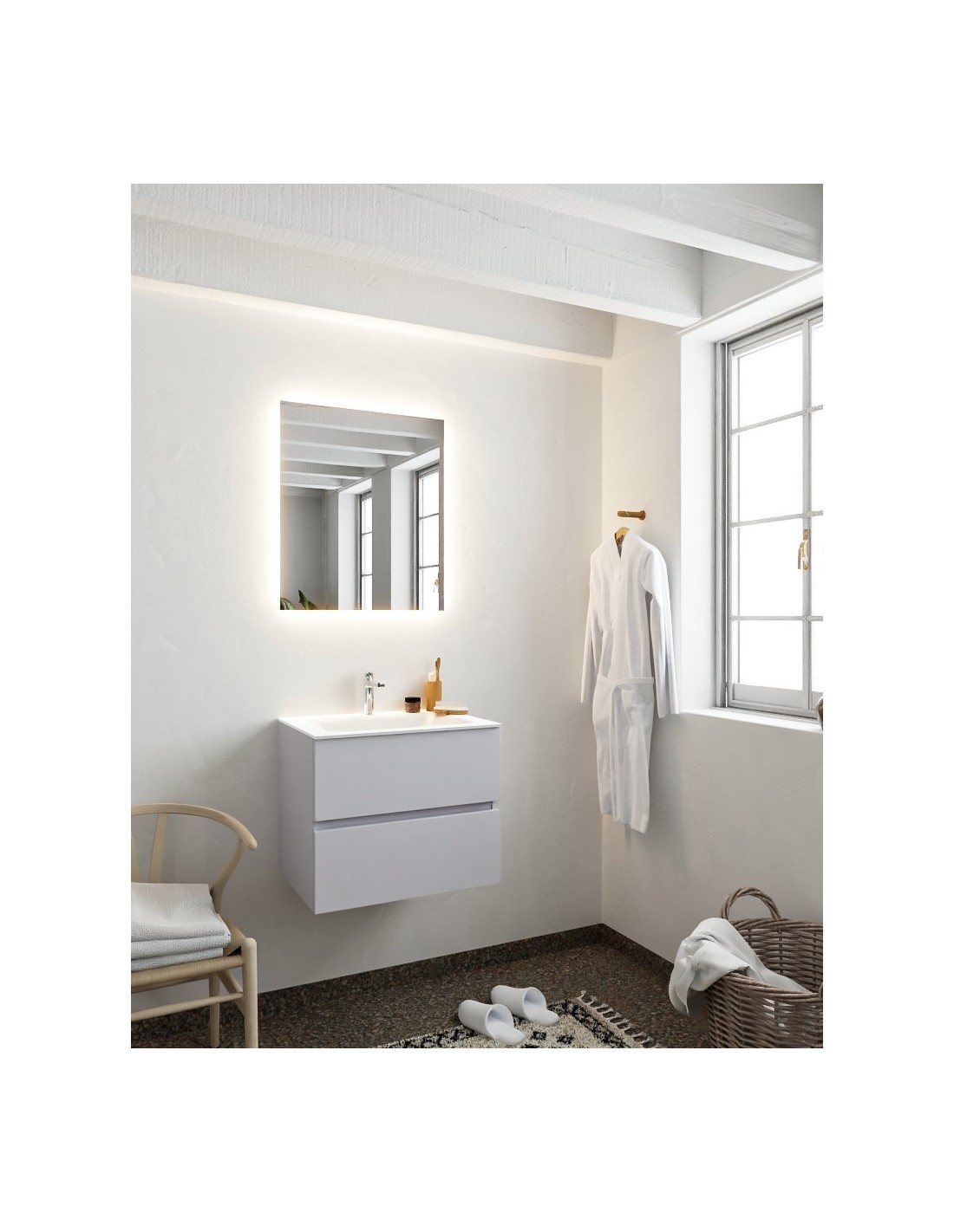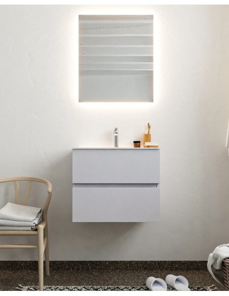 Vica Komplet badmiljø centreret håndvask B60 cm MDF - Svag grå/Talkum