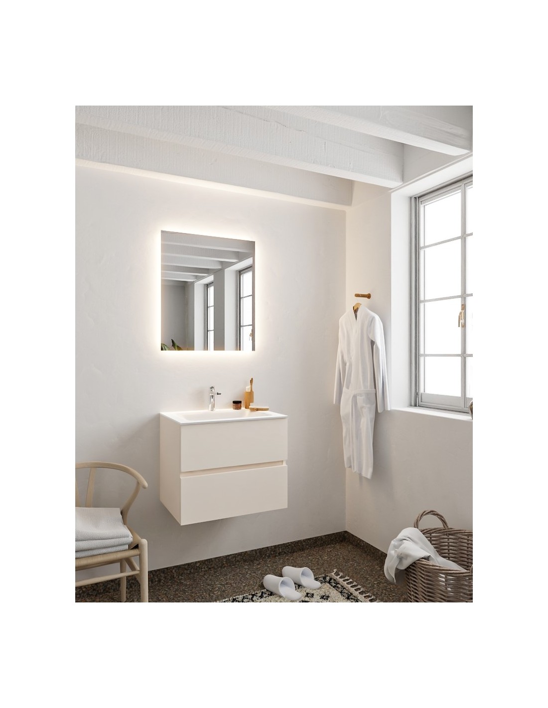 Vica Komplet badmiljø centreret håndvask B60 cm MDF - Linned/Talkum