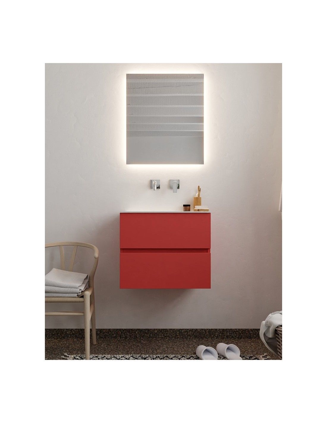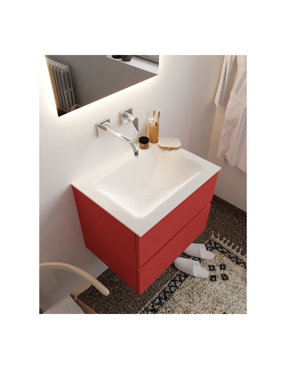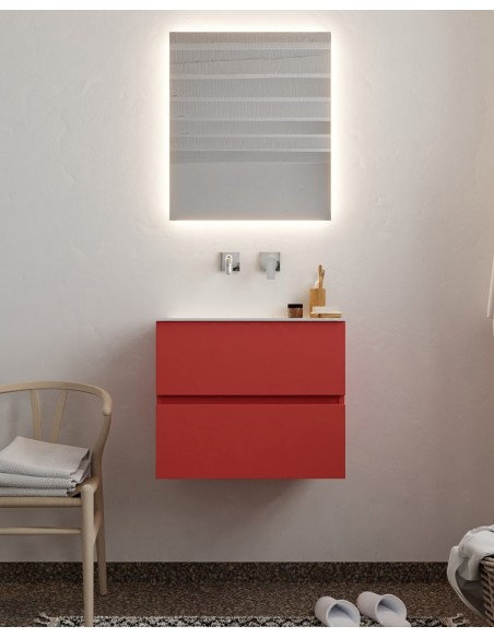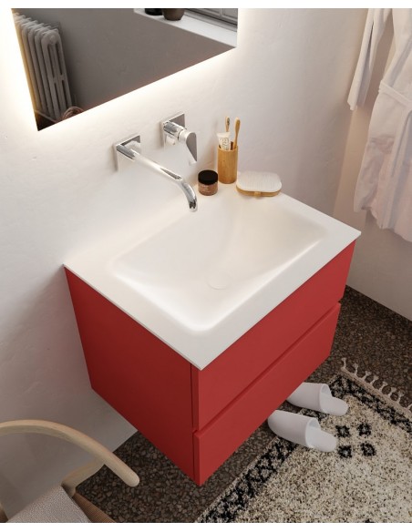 Vica Komplet badmiljø centreret håndvask B60 cm MDF - Rød/Talkum
