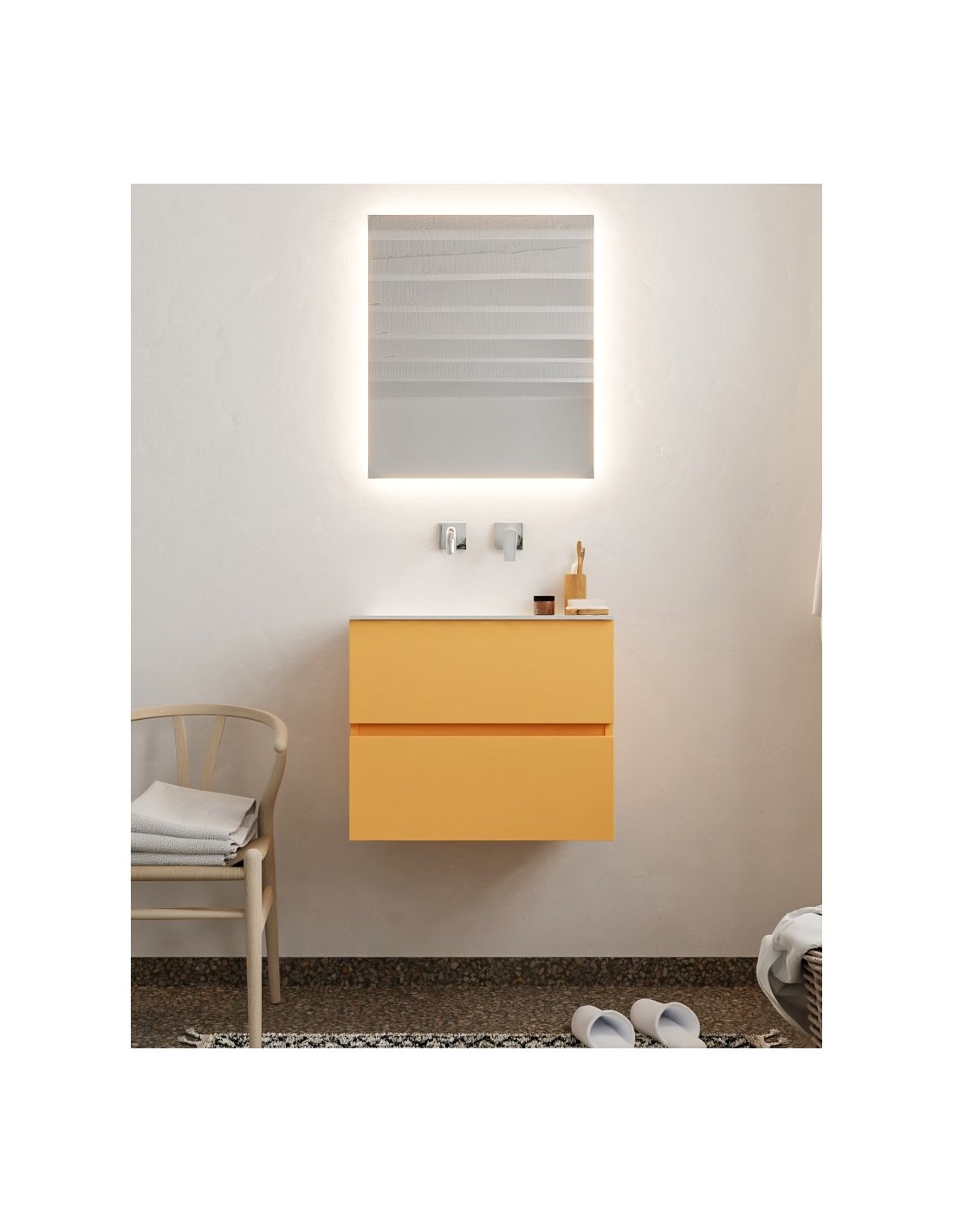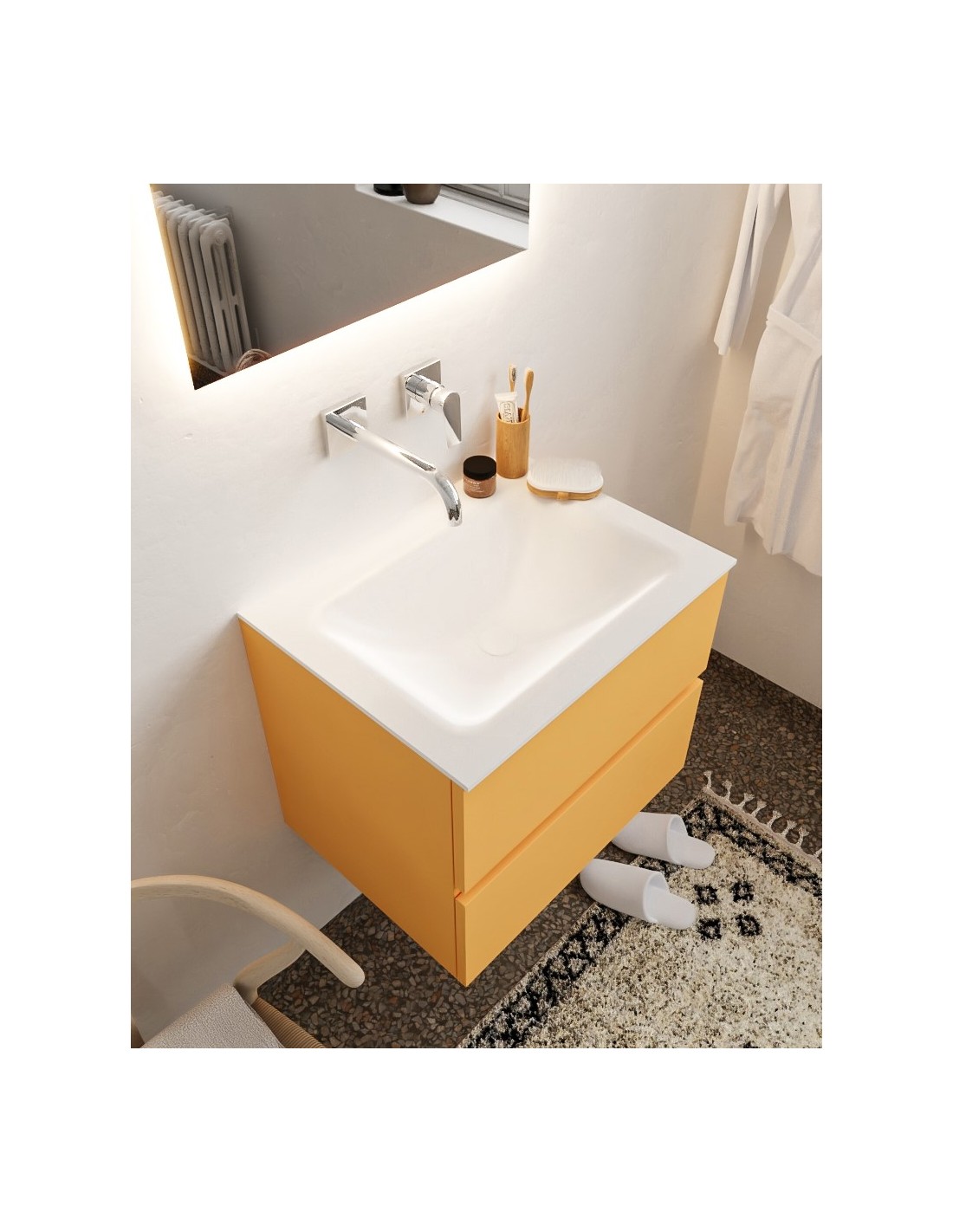 Vica Komplet badmiljø centreret håndvask B60 cm MDF - Okker/Talkum