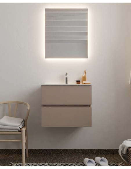 Vica Komplet badmiljø centreret håndvask B60 cm MDF - Røg/Talkum