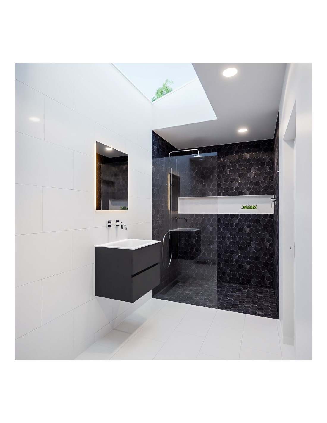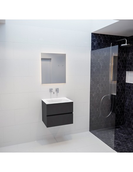 Vica Komplet badmiljø centreret håndvask B60 cm MDF - Mørkegrå/Talkum