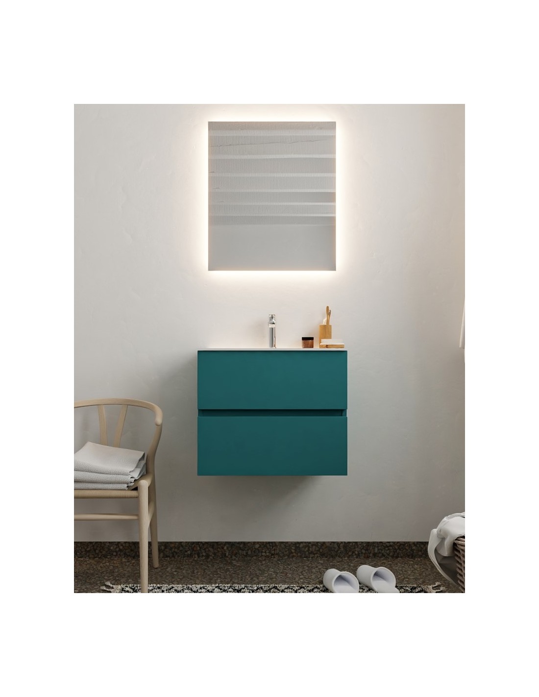 Vica Komplet badmiljø centreret håndvask B60 cm MDF - Petrolium/Talkum