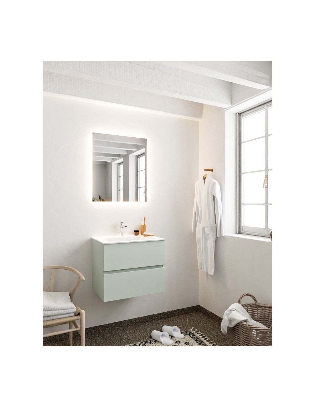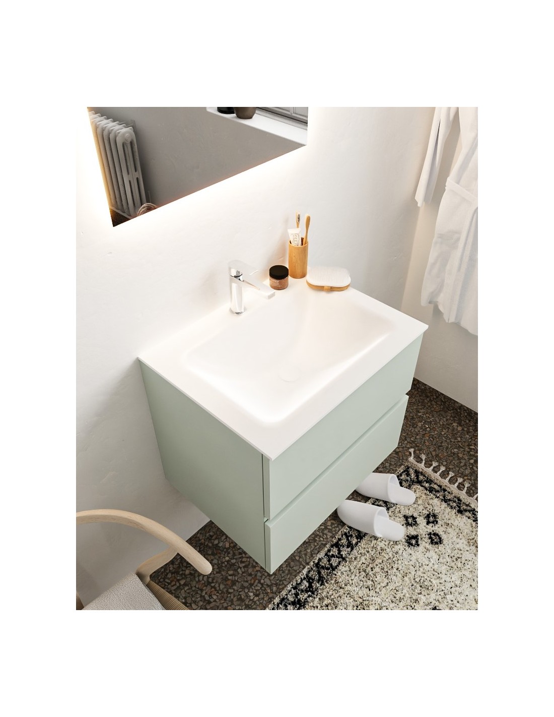 Vica Komplet badmiljø centreret håndvask B60 cm MDF - Svag grøn/Talkum