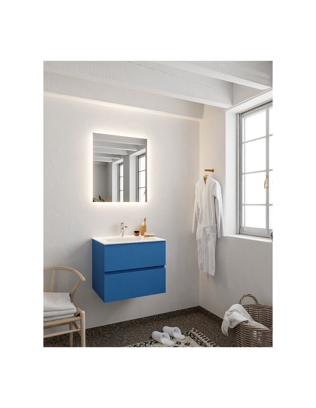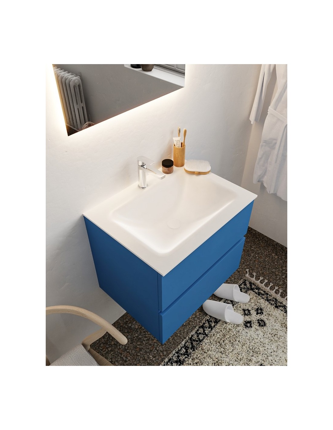 Vica Komplet badmiljø centreret håndvask B60 cm MDF - Jeansblå/Talkum