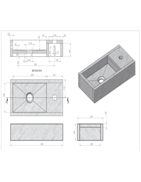 • Kan kun monteres i den viste opsætning med armaturhul mod højre