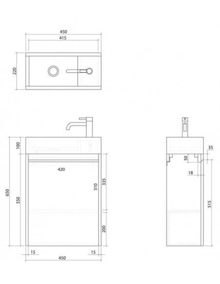 • Armatur, afløb og bundventil med pop-up medfølger ikke (tilkøb)