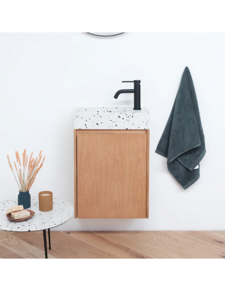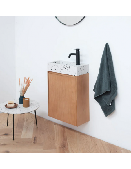 Krabi komplet badmiljø B45 cm i MDF og terrazzo - Eg/Hvid