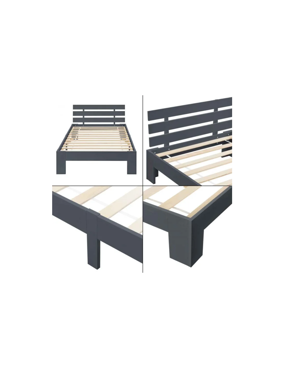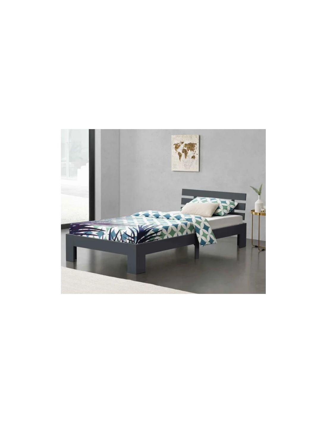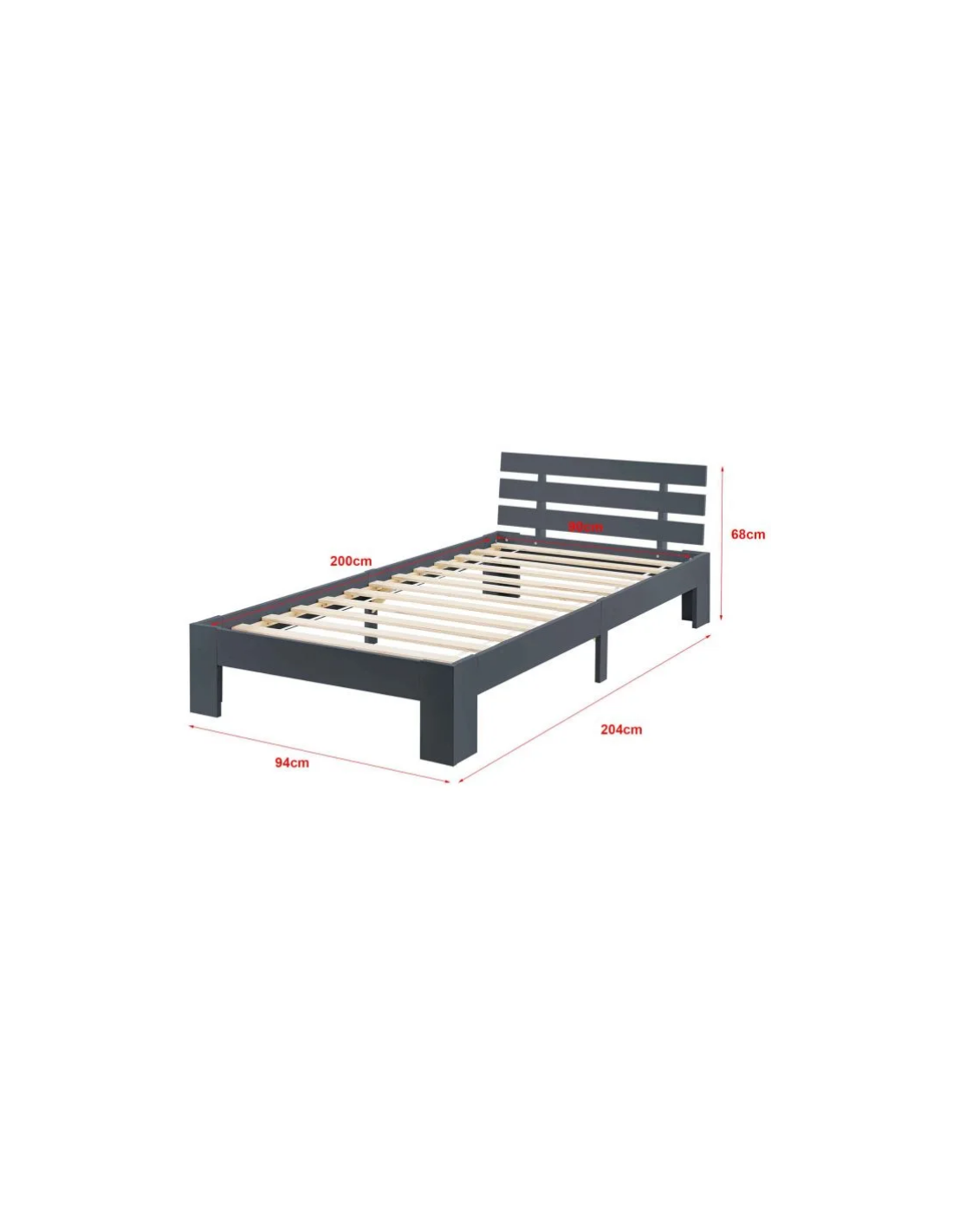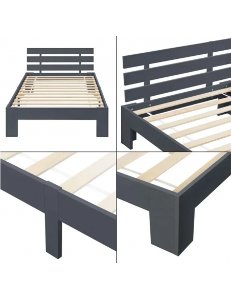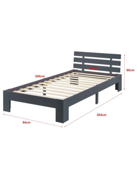 Sengeramme med gavl i fyrretræ 204 x 94 cm - Grå