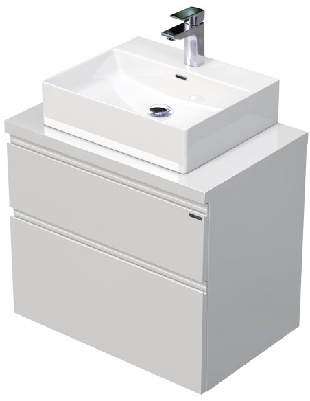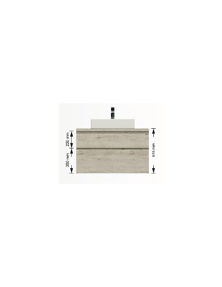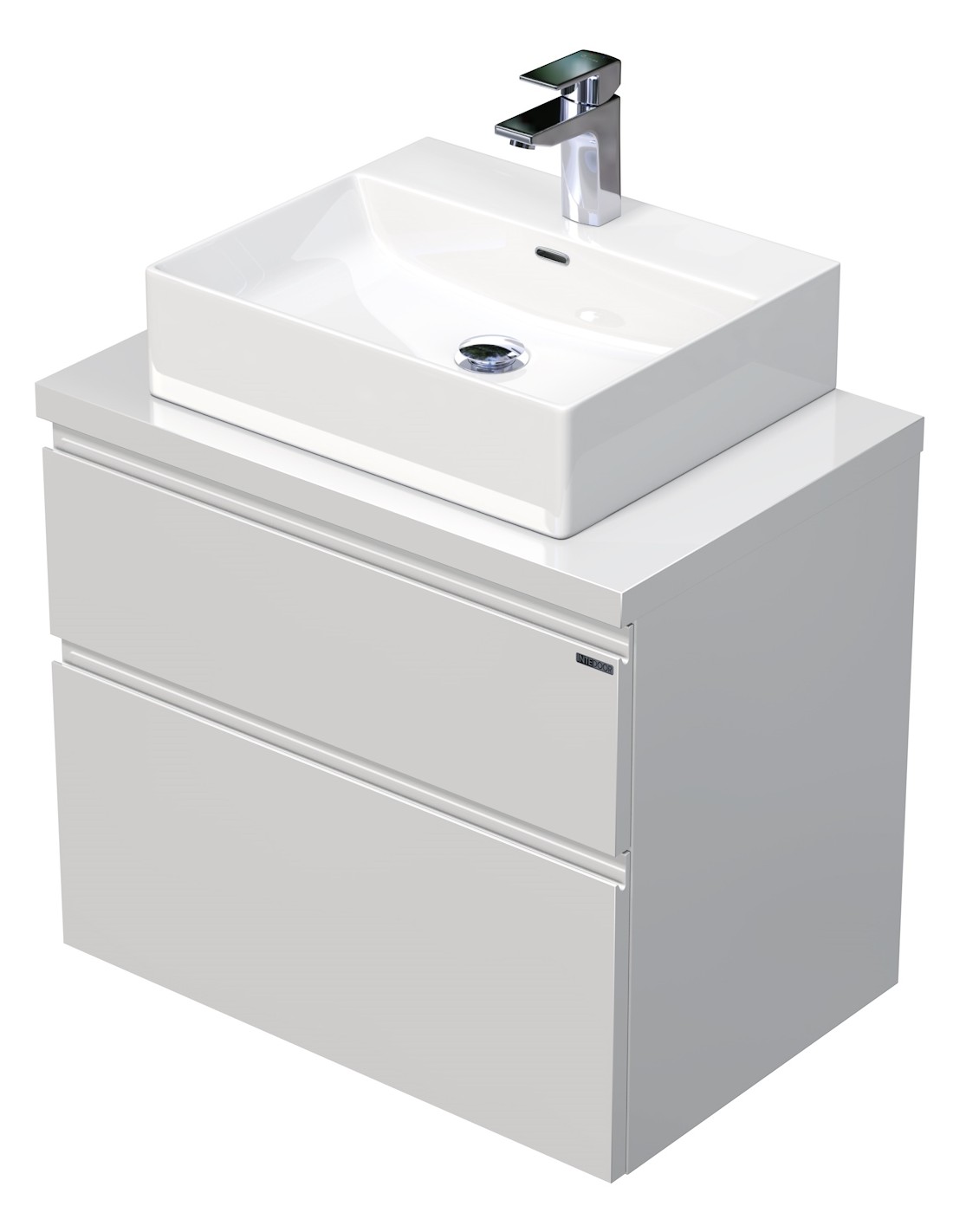 LETTY Komplet badmiljø med håndvask til bordmonteret armatur. Badmiljøet kommer med 2 skuffer med softclose og er fremstillet i MDF. Håndvasken er fremstillet i hvid keramik. Badmiljøet måler 70 cm i bredden. Det viste armatur medfølger ikke i sættet.