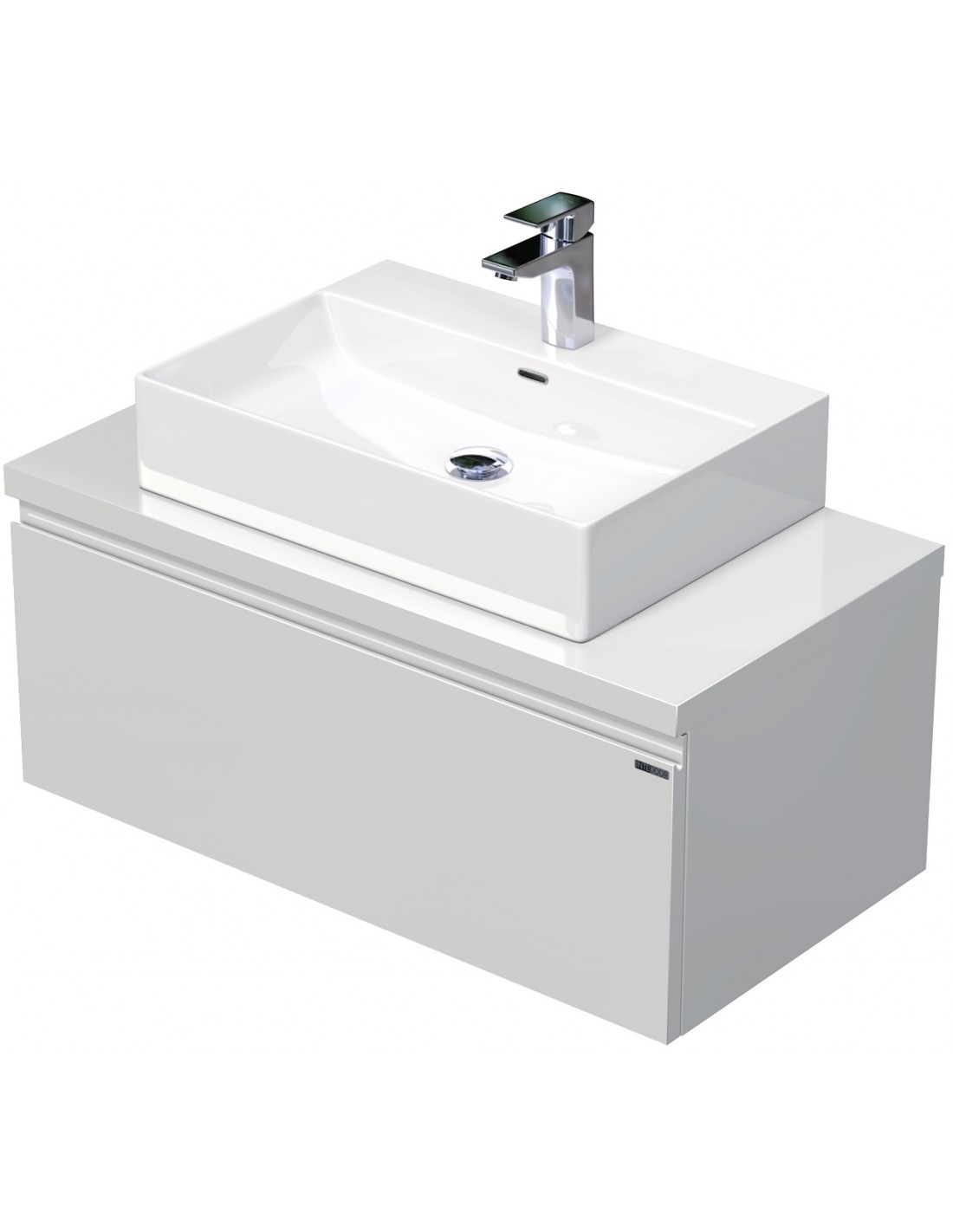 LETTY Komplet badmiljø med håndvask til bordmonteret armatur. Badmiljøet kommer med 1 skuffe med softclose og er fremstillet i MDF. Håndvasken er fremstillet i hvid keramik. Badmiljøet måler 90 cm i bredden. Det viste armatur medfølger ikke i sættet.