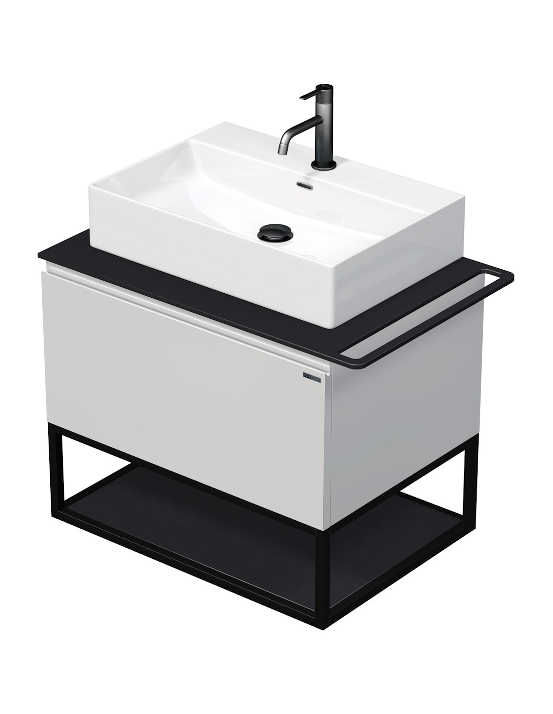 TARA Komplet badmiljø med 1 håndvask B78 cm Keramik, HPL og MDF - Sort/Hvid højglans
