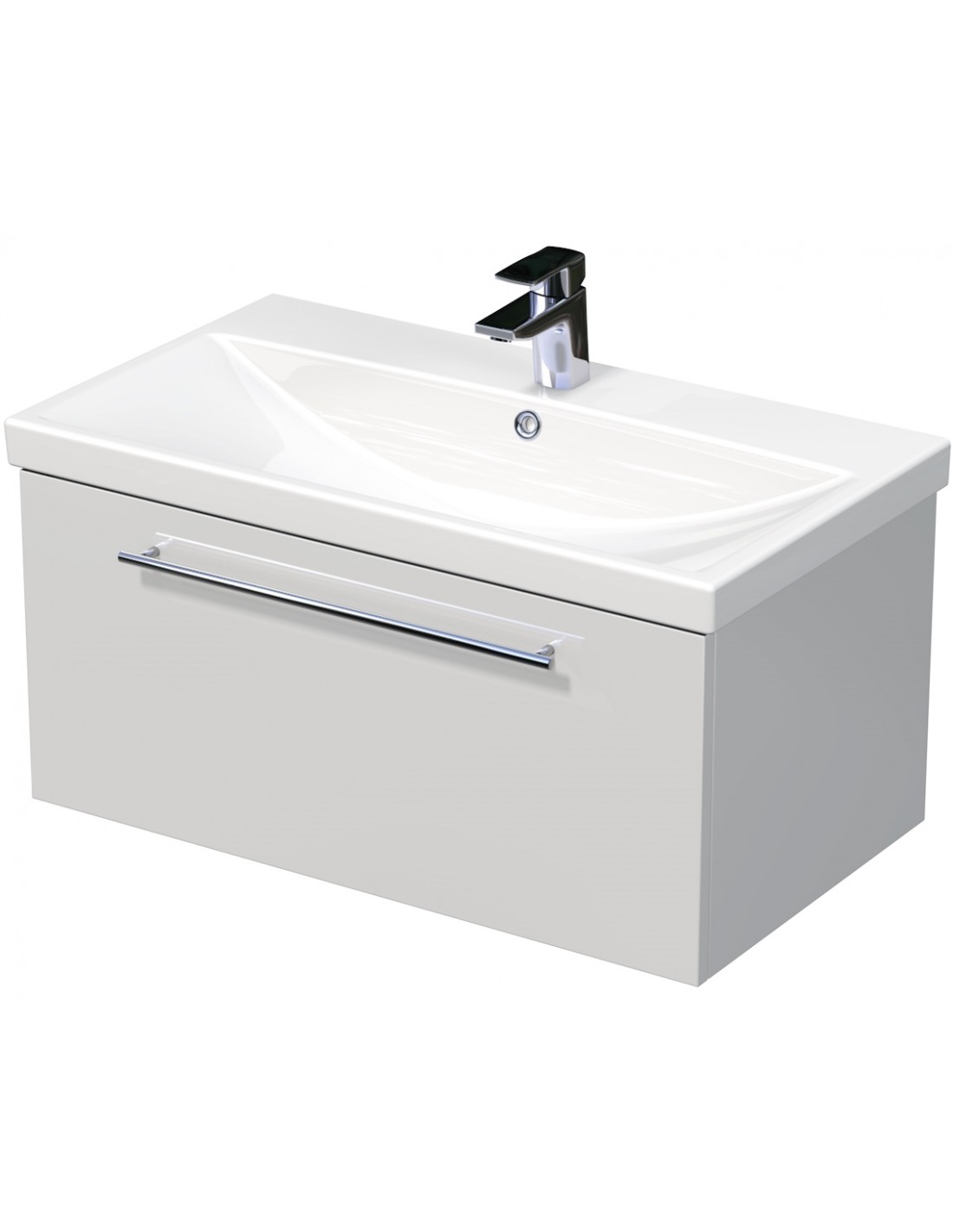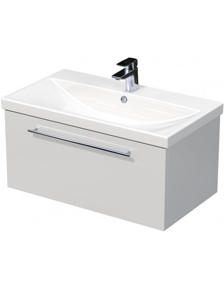 ELITE Komplet badmiljø med håndvask til bordmonteret armatur. Badmiljøet kommer med 1 skuffe med softclose og er fremstillet i MDF. Håndvasken er fremstillet i hvid keramik. Badmiljøet måler 80 cm i bredden. Det viste armatur samt bundventil medfølger ikke i sættet.