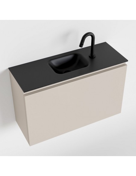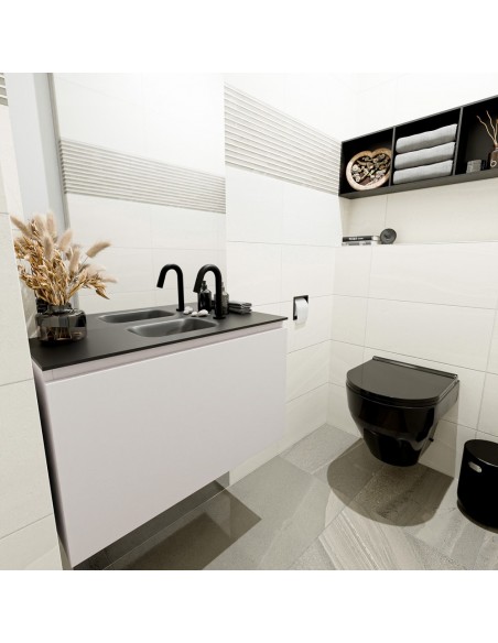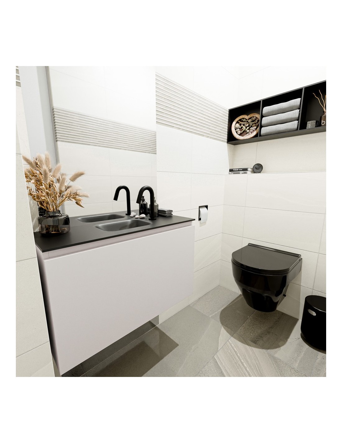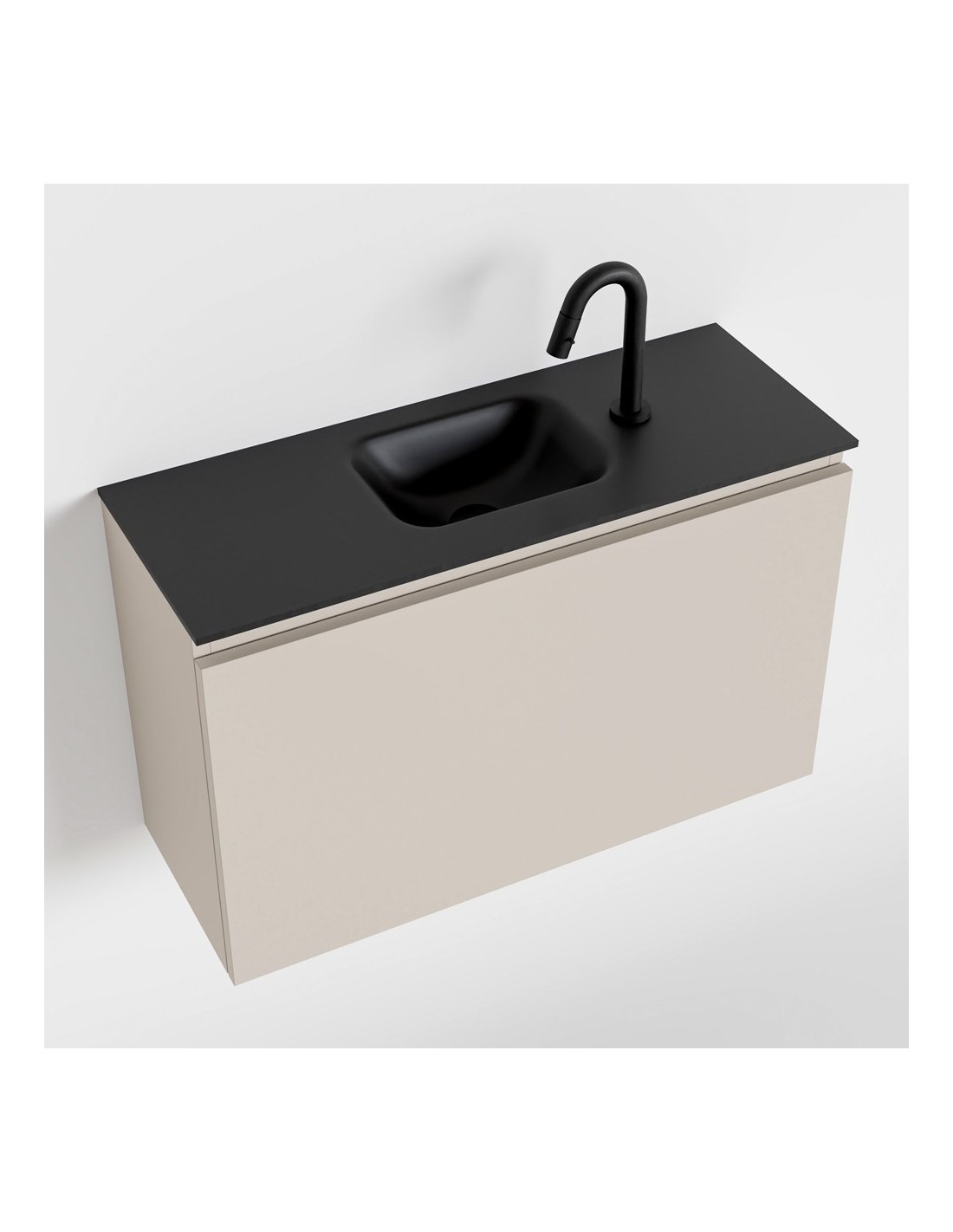 OLAN Komplet badmiljø centreret håndvask B80 cm MDF - Linned/Sort