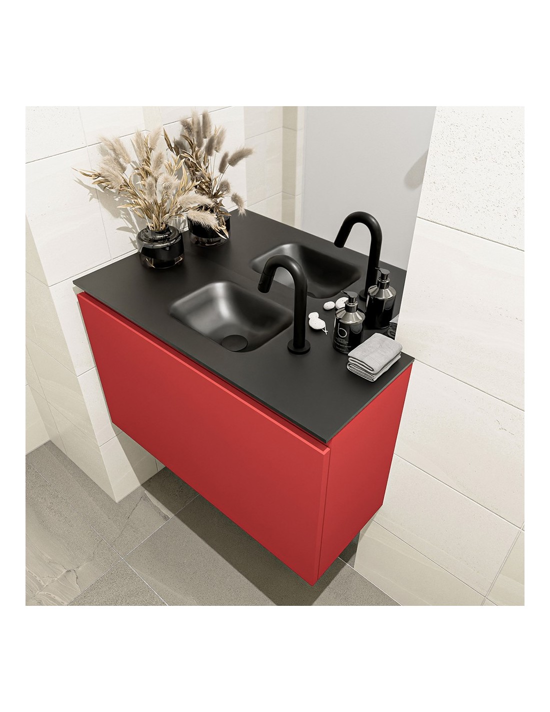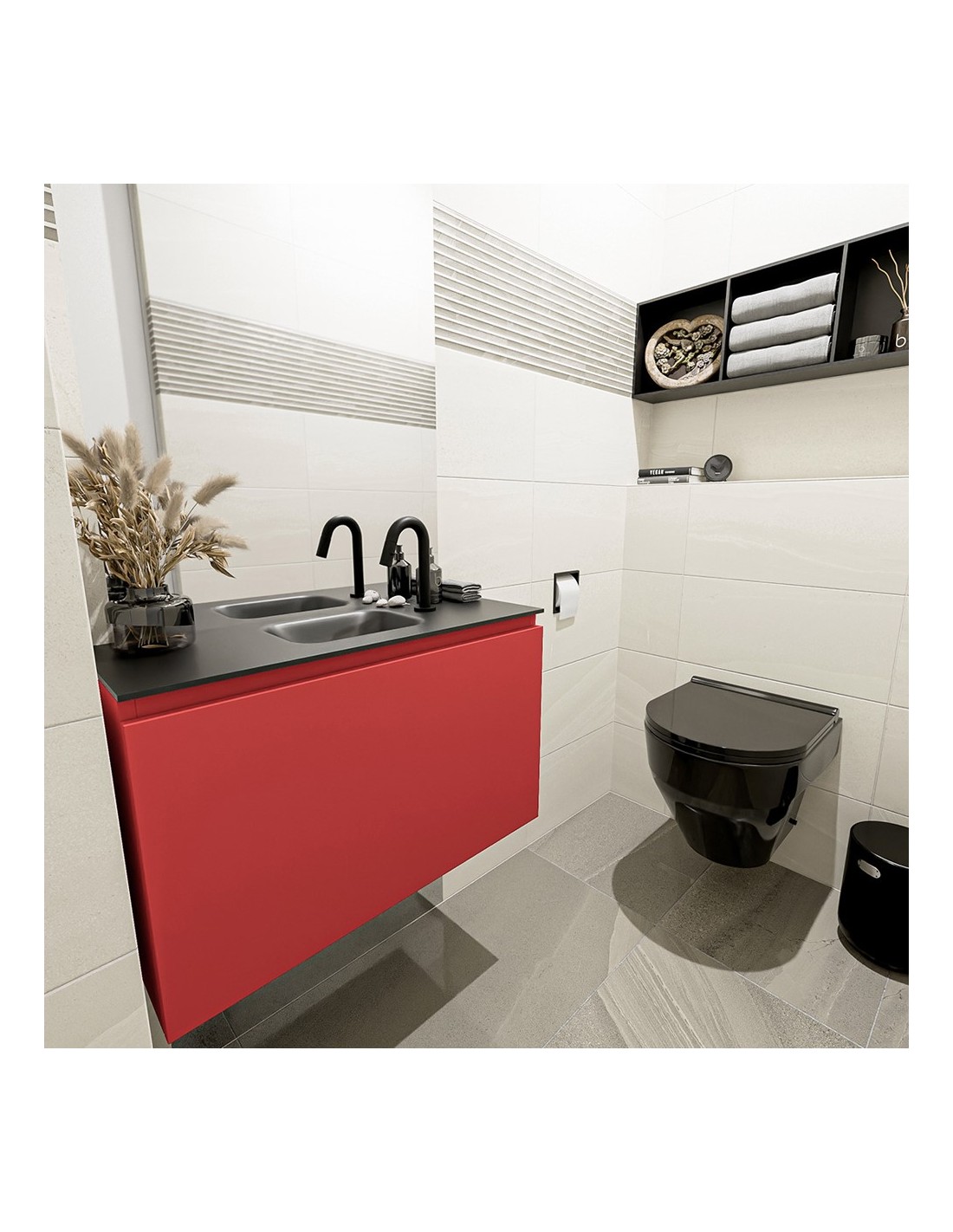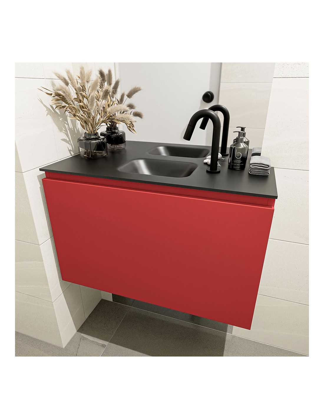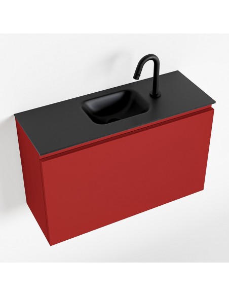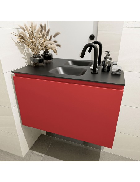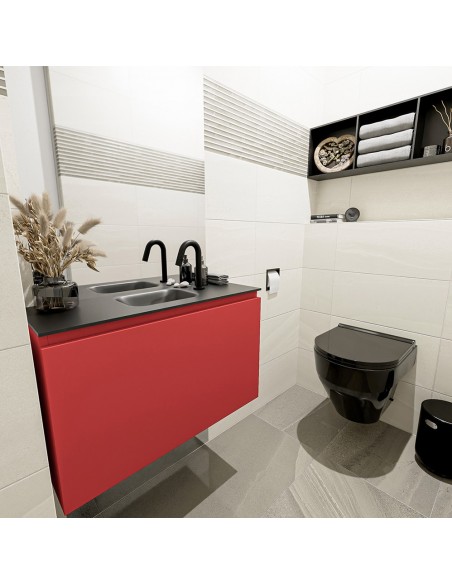OLAN Komplet badmiljø centreret håndvask B80 cm MDF - Rød/Sort