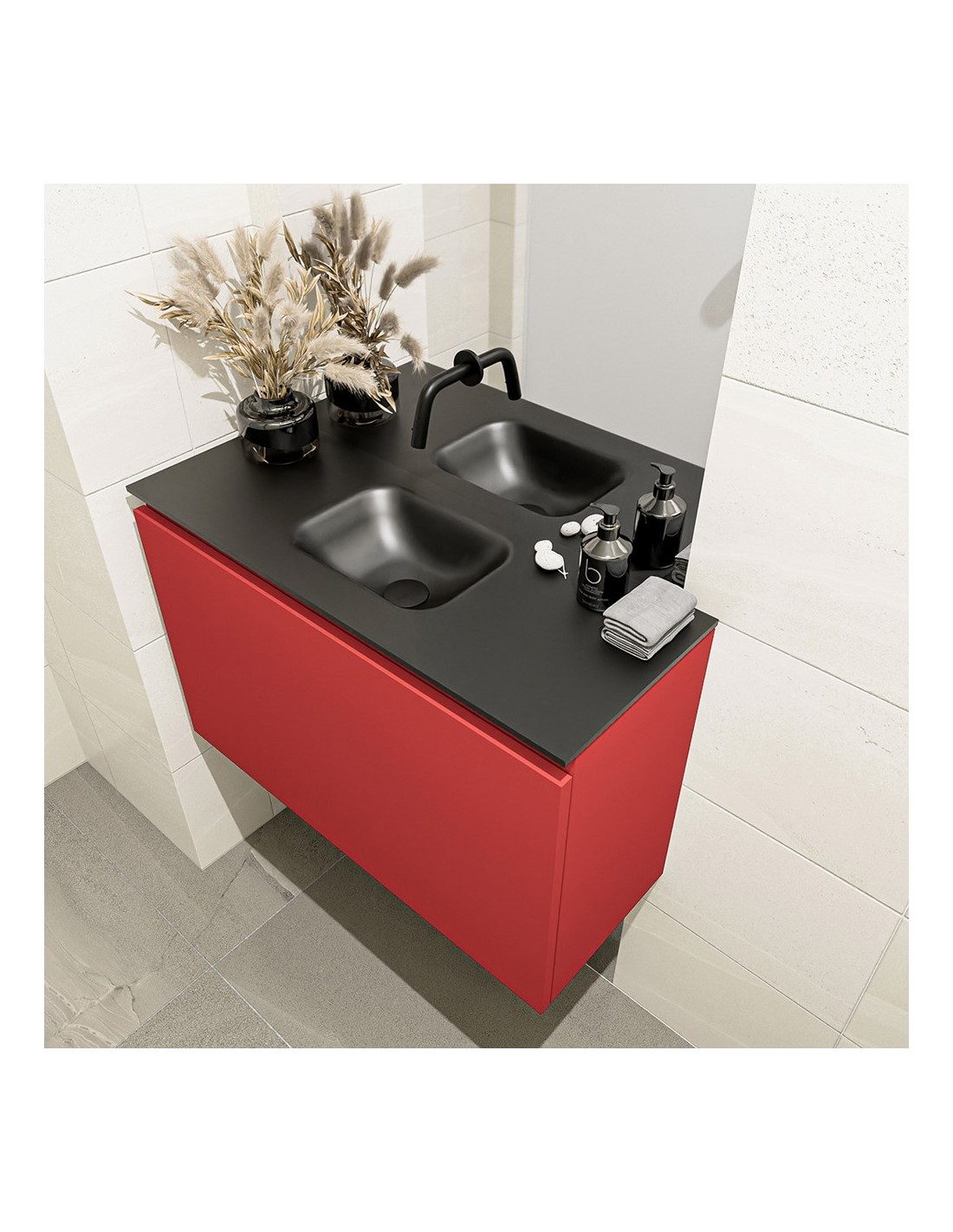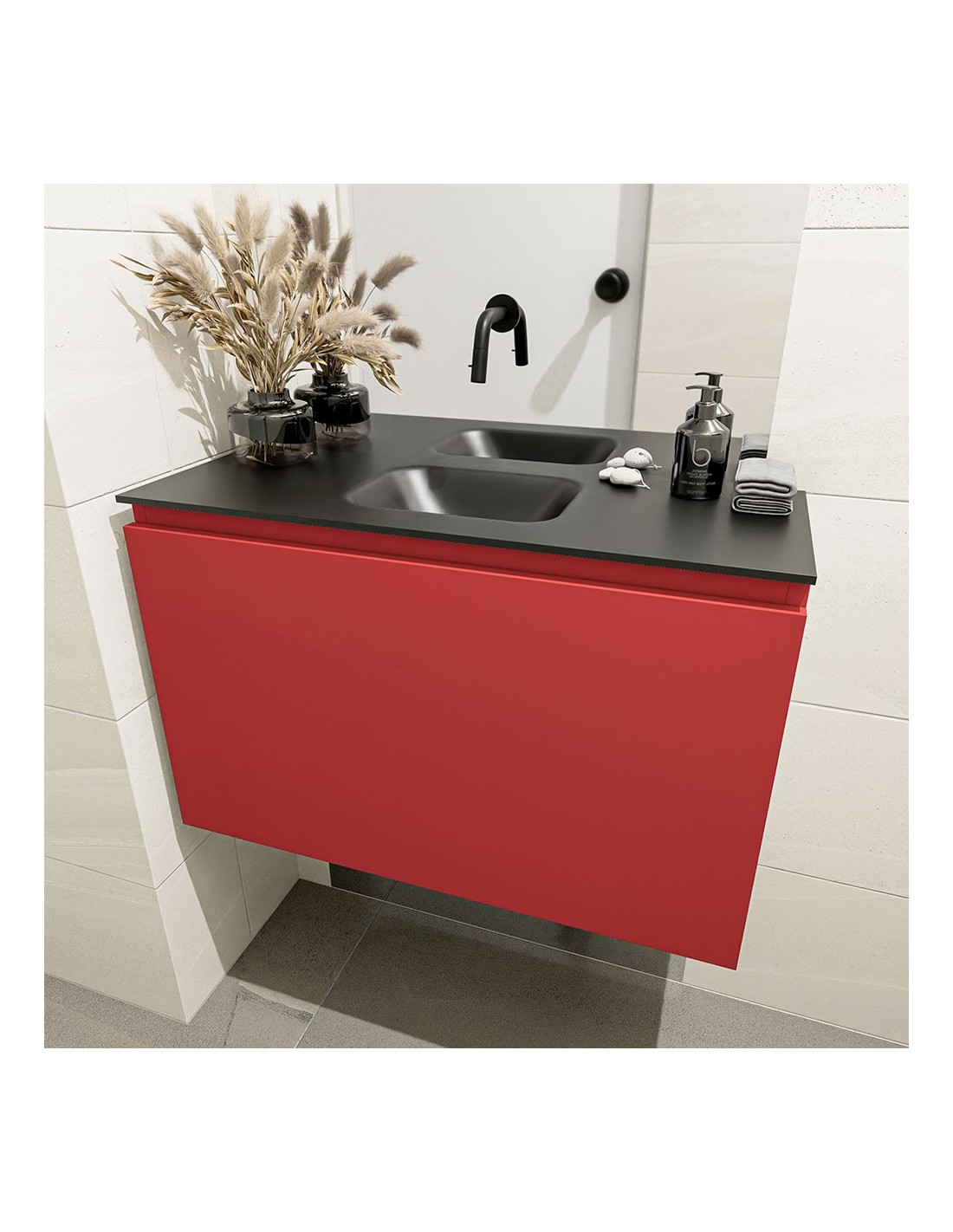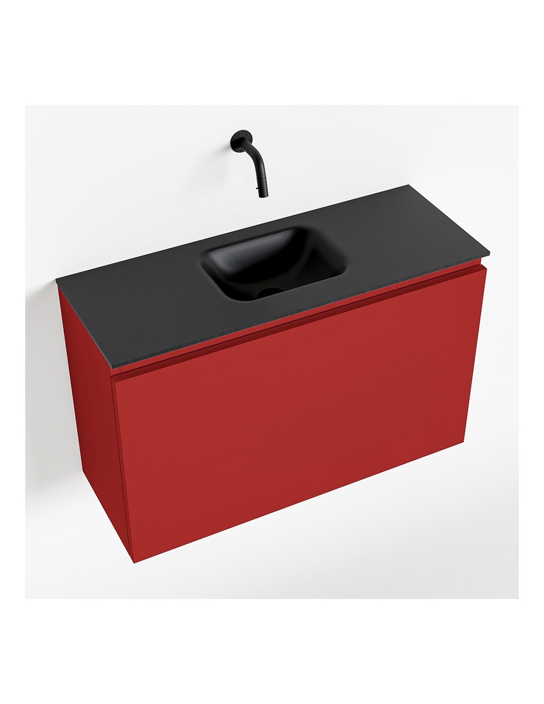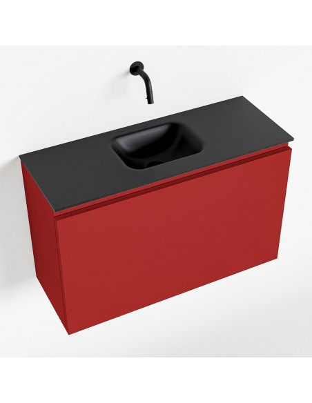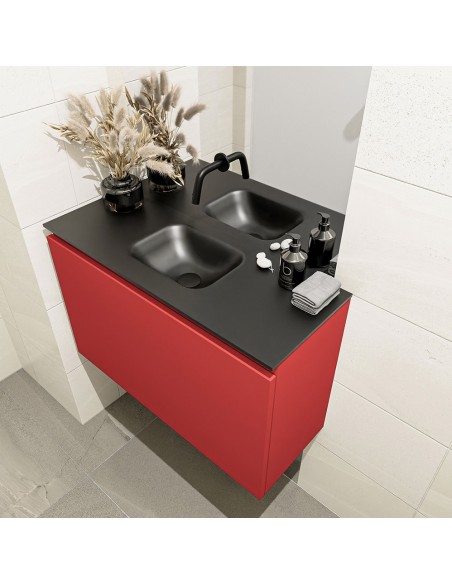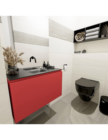 OLAN Komplet badmiljø centreret håndvask B80 cm MDF - Rød/Sort