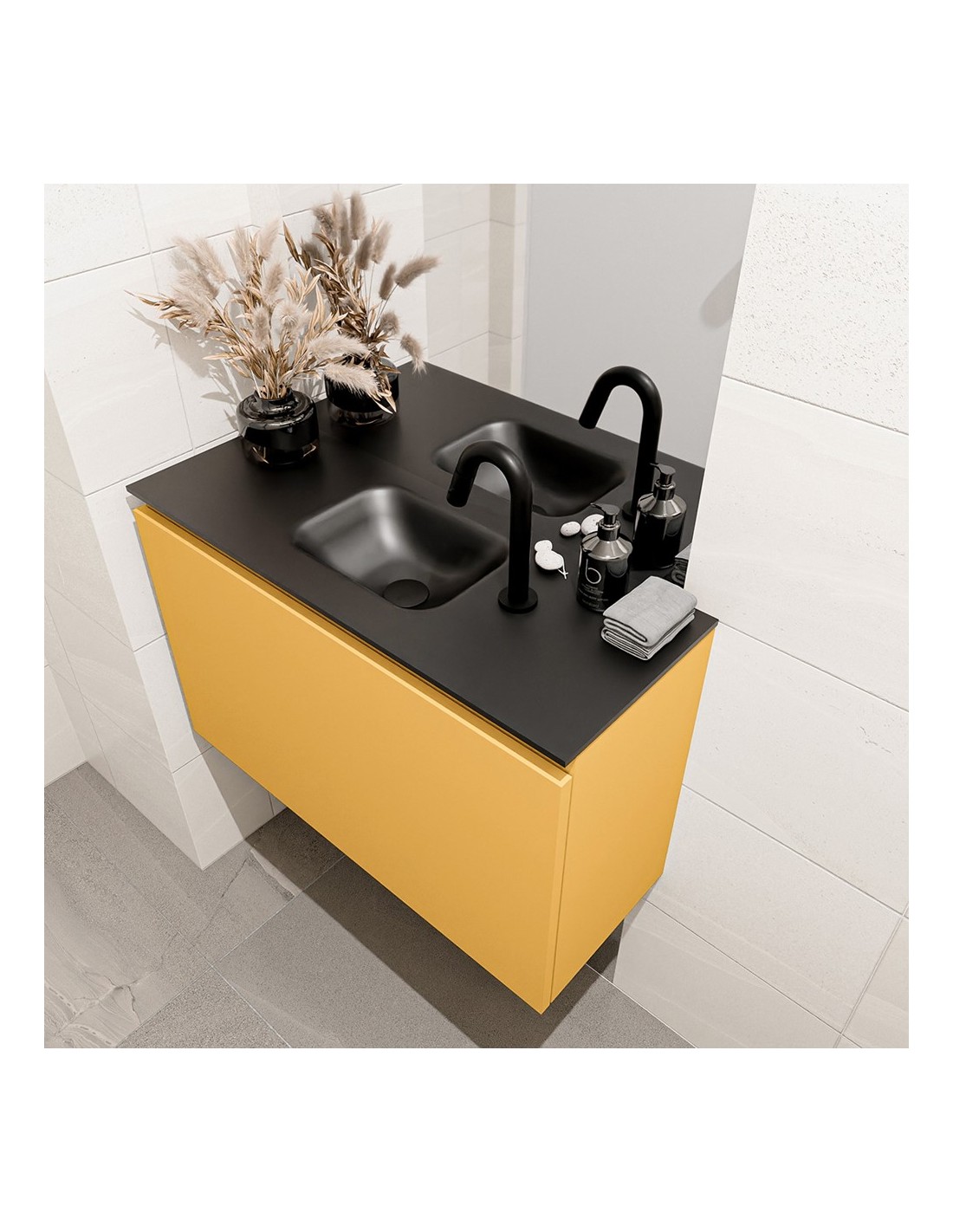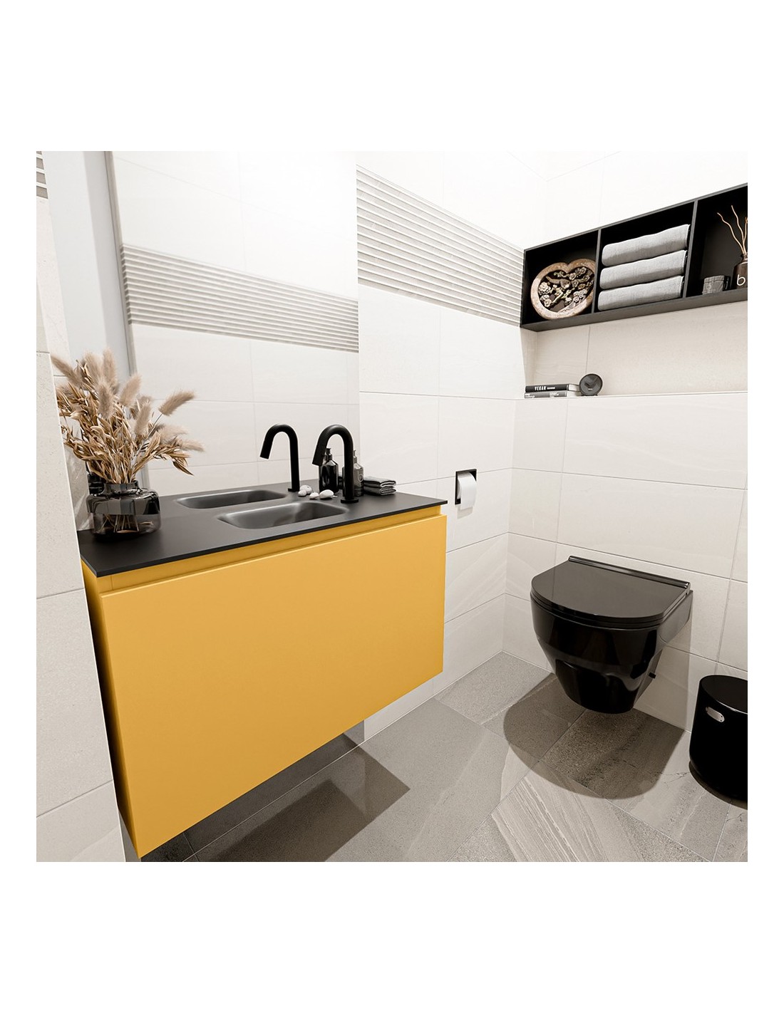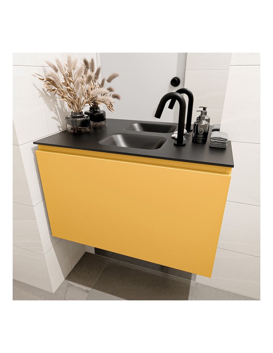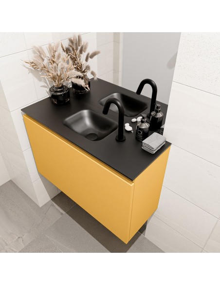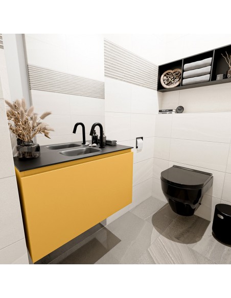 OLAN Komplet badmiljø centreret håndvask B80 cm MDF - Okker/Sort