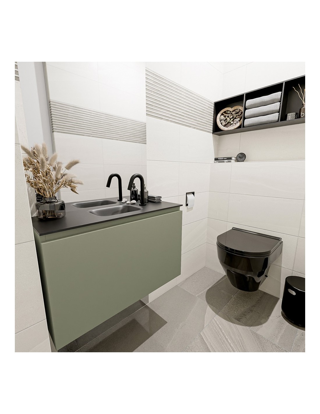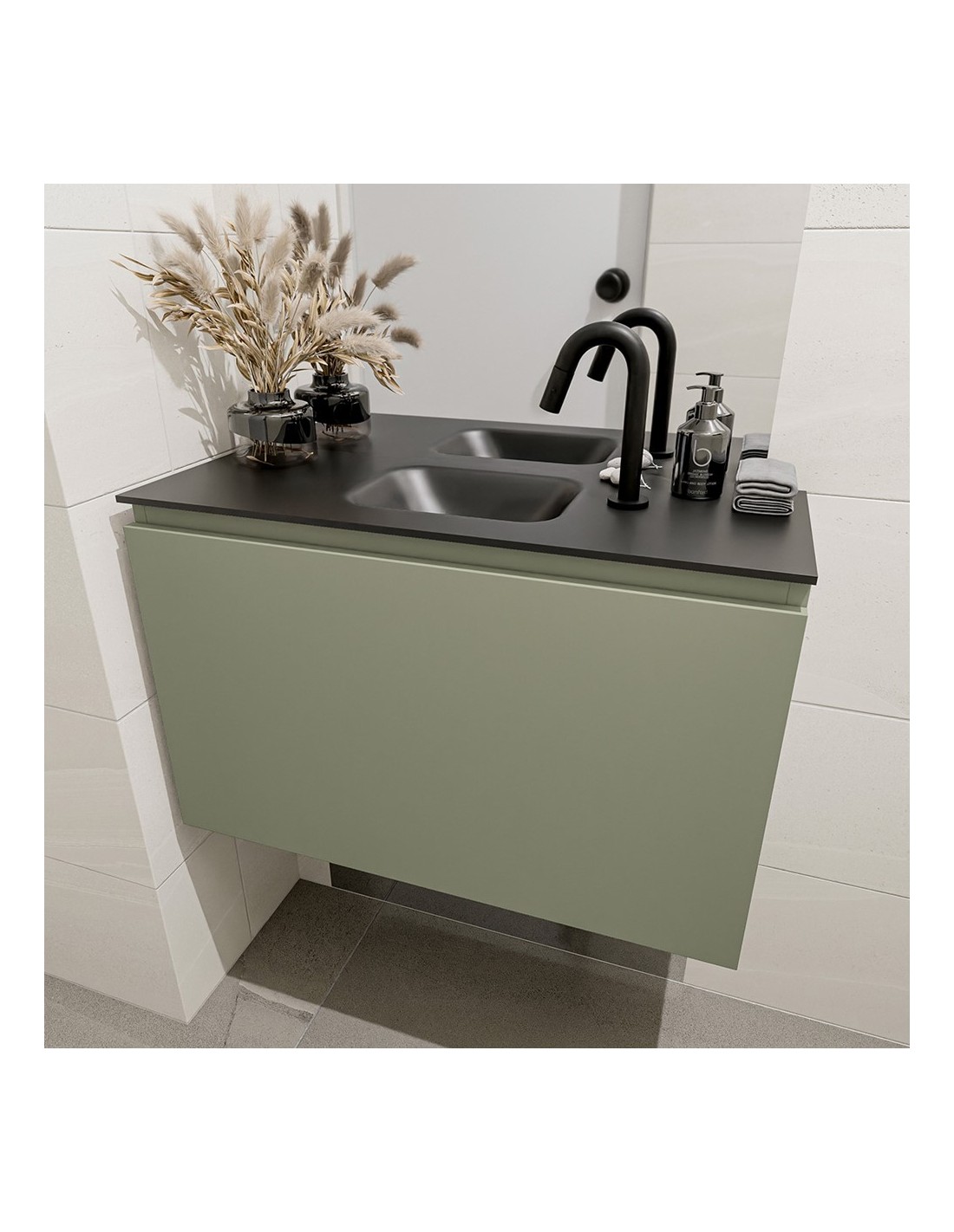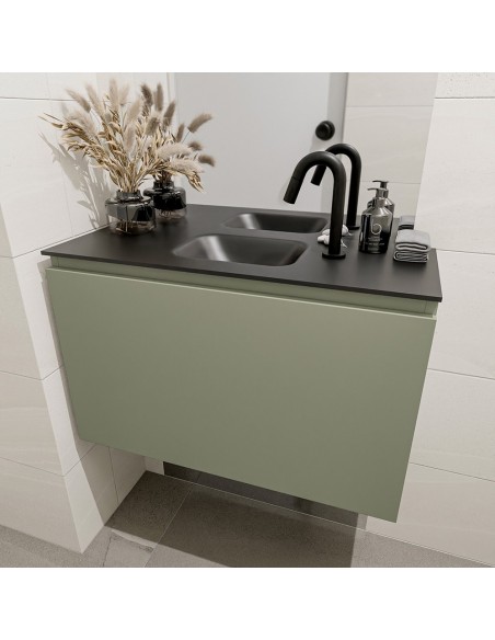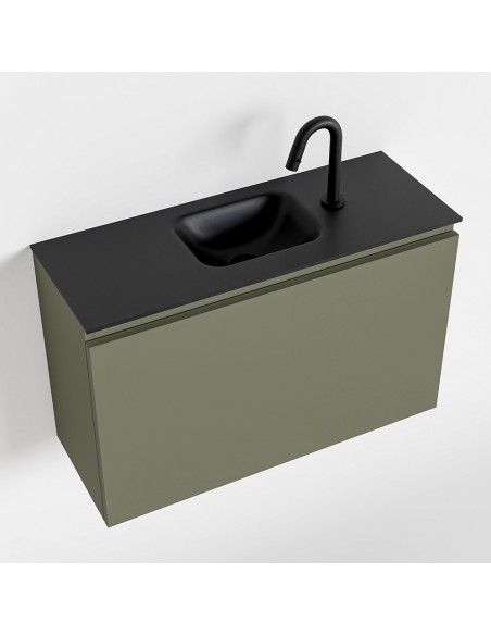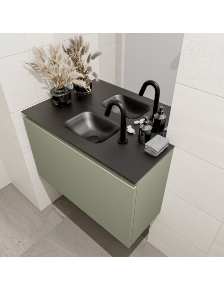 OLAN Komplet badmiljø centreret håndvask B80 cm MDF - Armygrøn/Sort