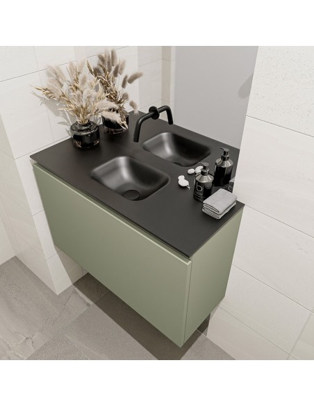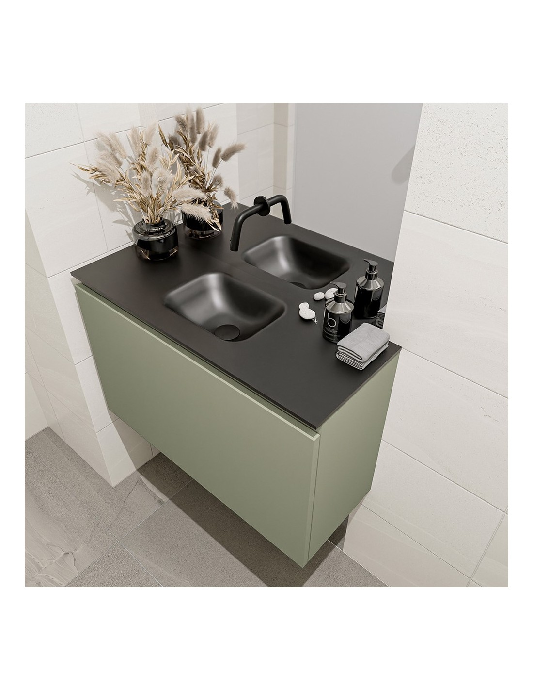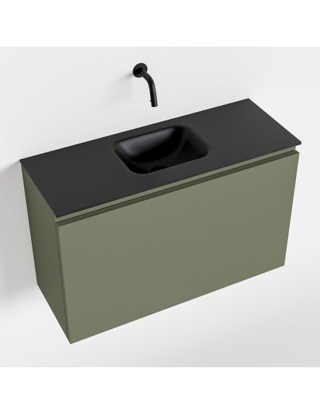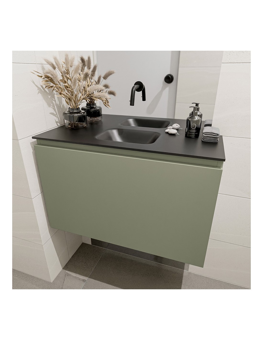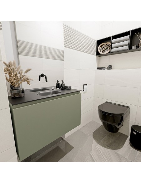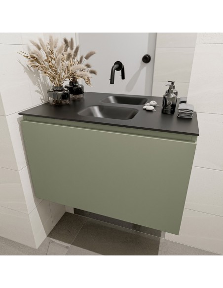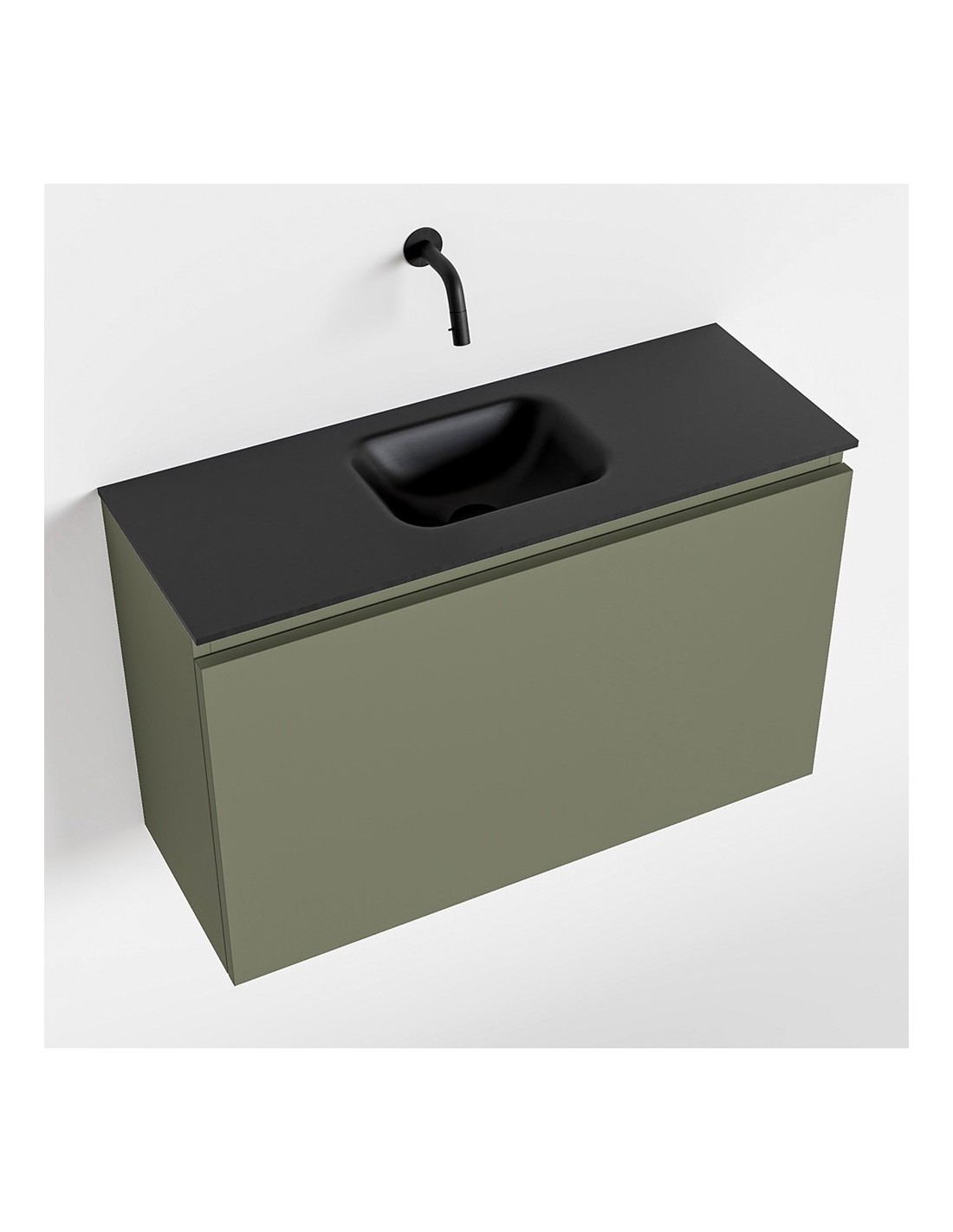 OLAN Komplet badmiljø centreret håndvask B80 cm MDF - Armygrøn/Sort