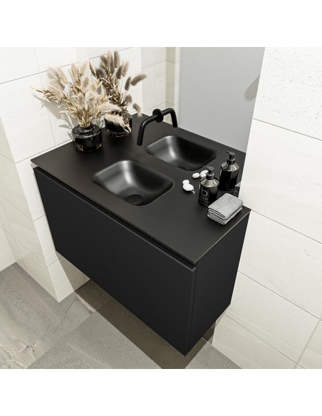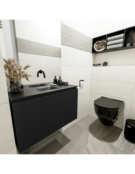 OLAN Komplet badmiljø centreret håndvask B80 cm MDF - Sort/Sort