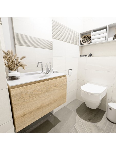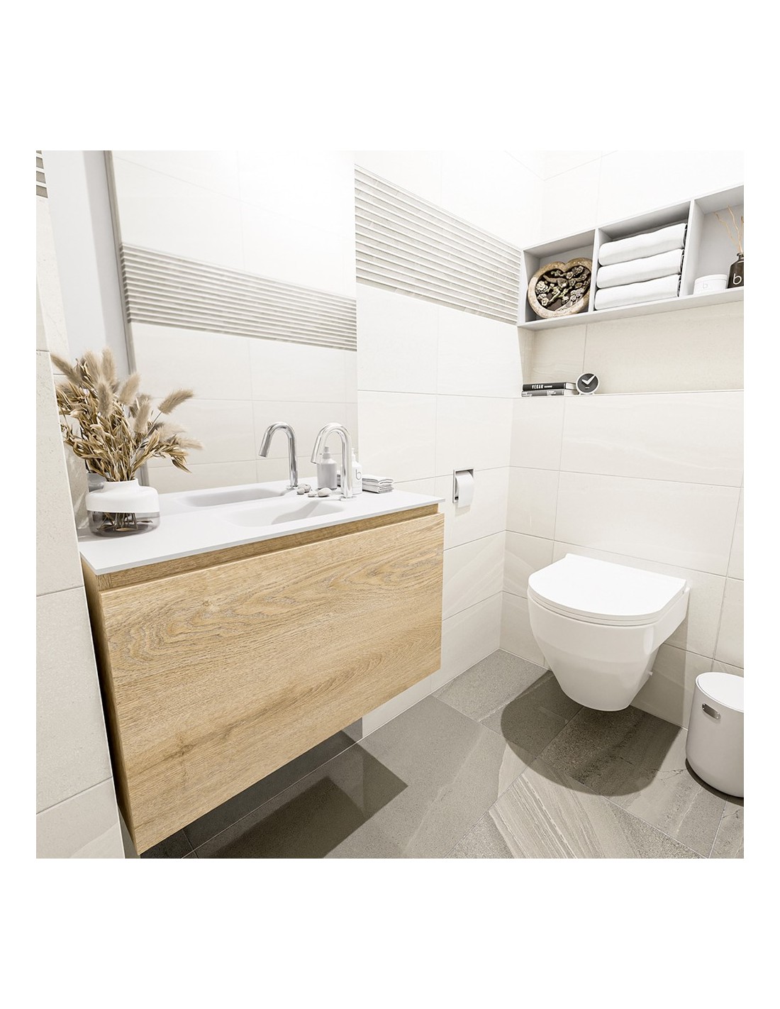 OLAN Komplet badmiljø centreret håndvask B80 cm MDF - Vasket eg/Talkum