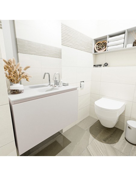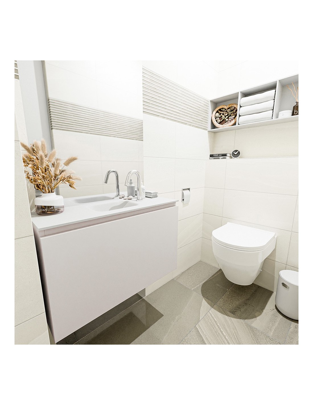 OLAN Komplet badmiljø centreret håndvask B80 cm MDF - Linned/Talkum