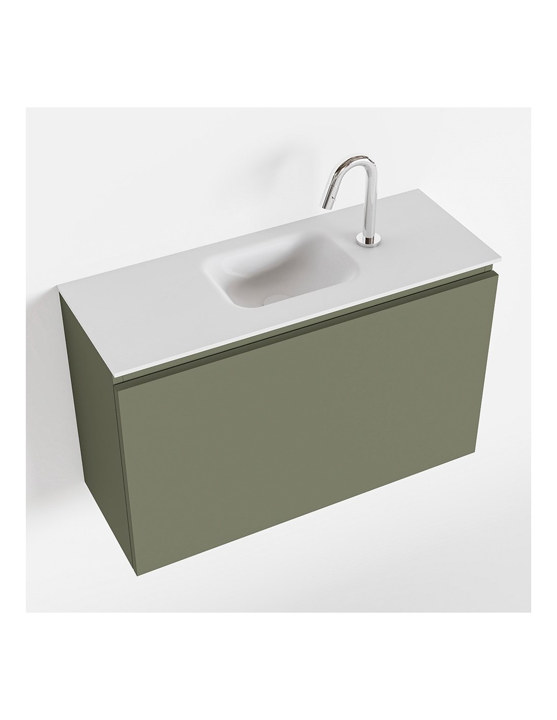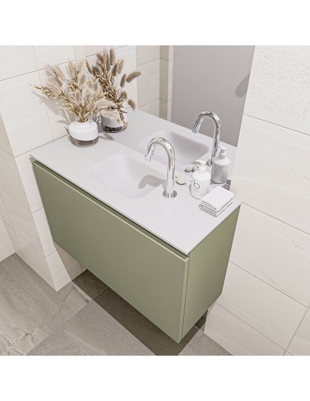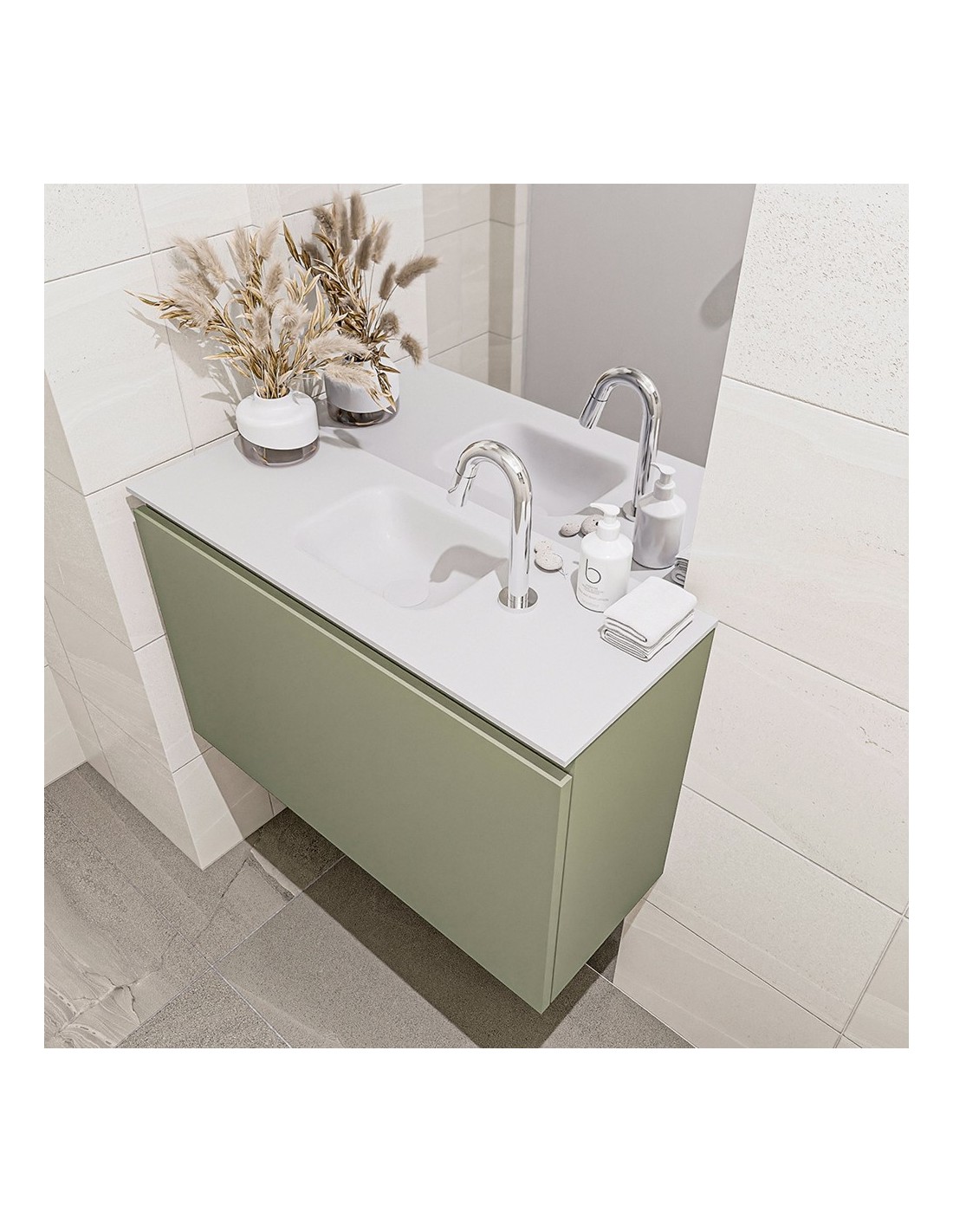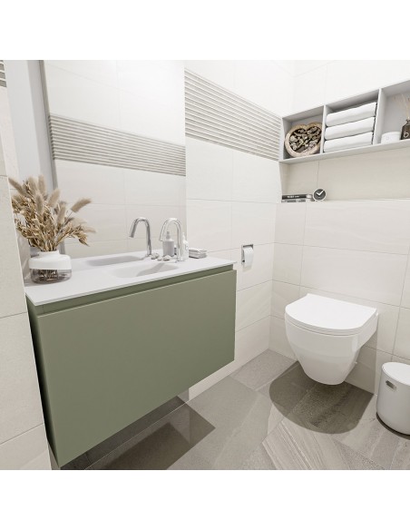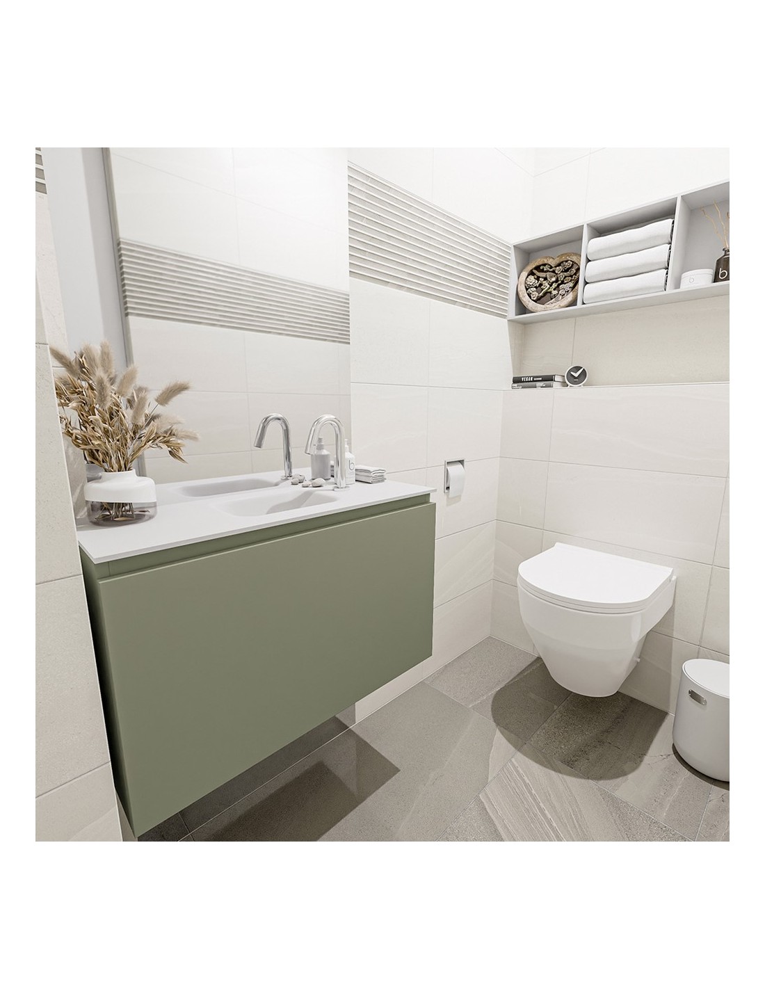 OLAN Komplet badmiljø centreret håndvask B80 cm MDF - Armygrøn/Talkum
