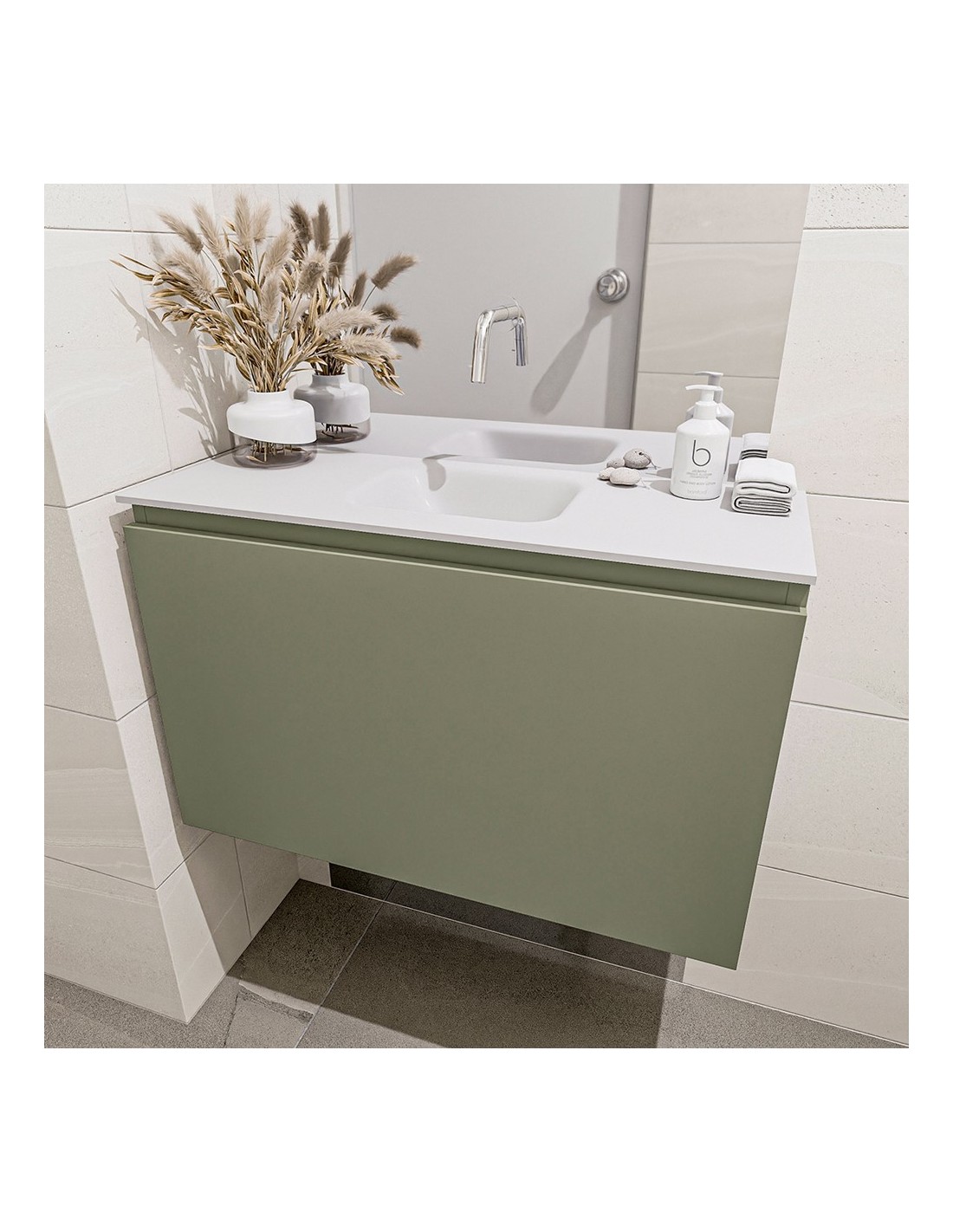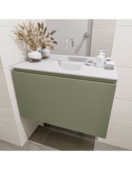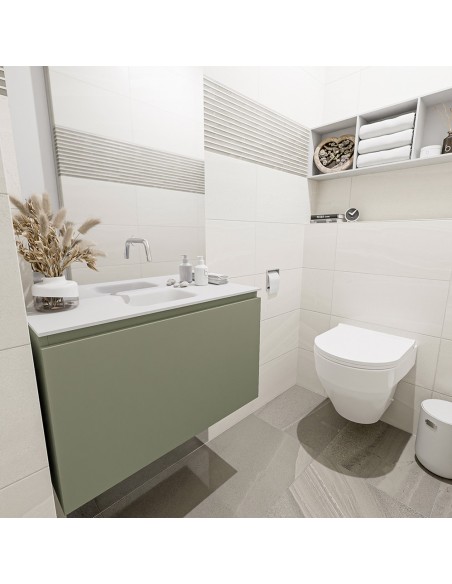 OLAN Komplet badmiljø centreret håndvask B80 cm MDF - Armygrøn/Talkum