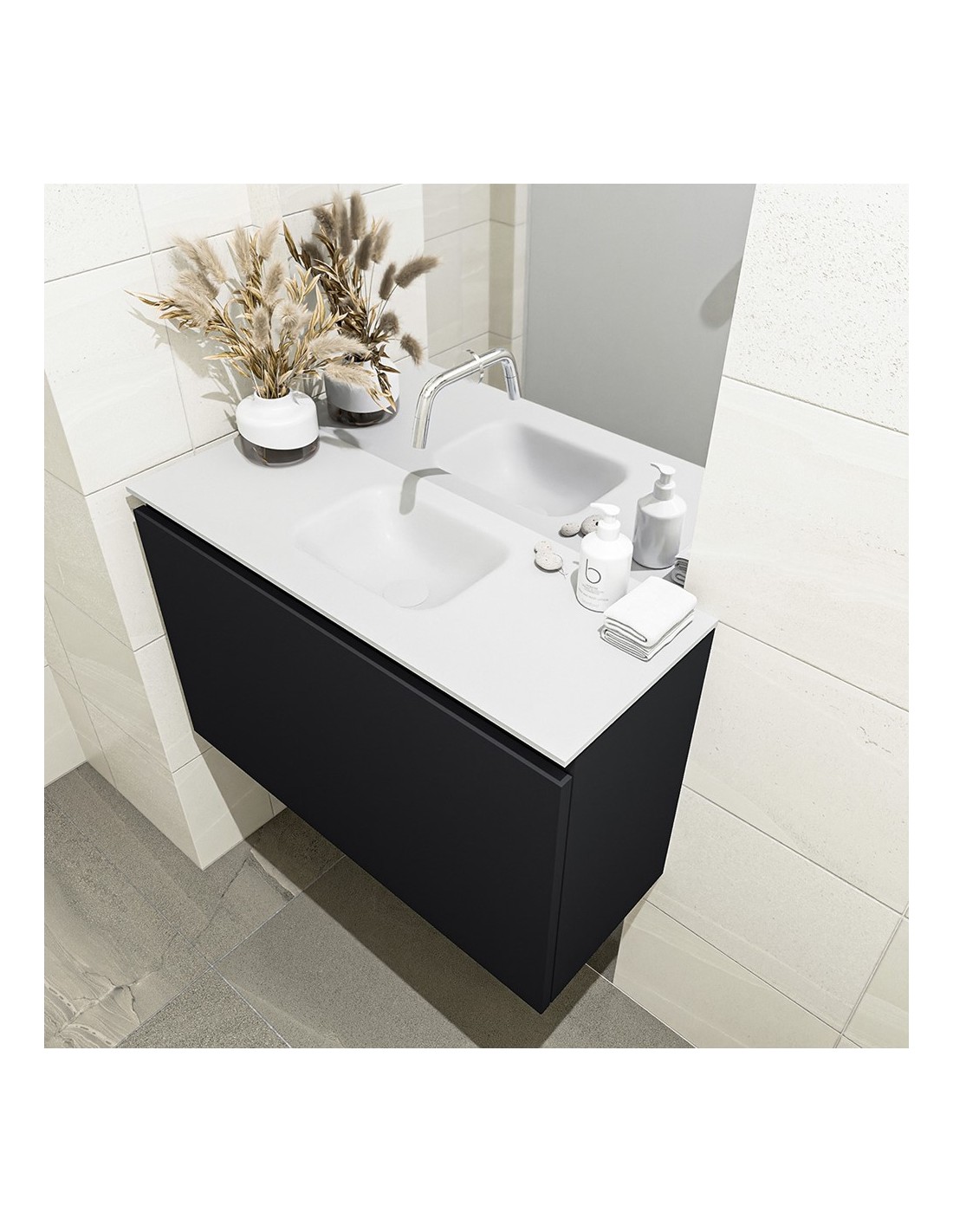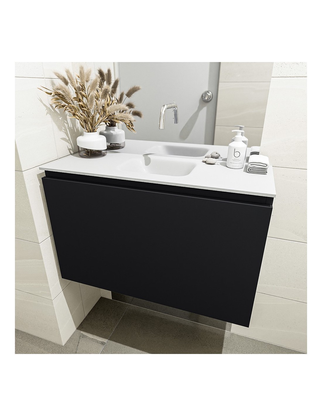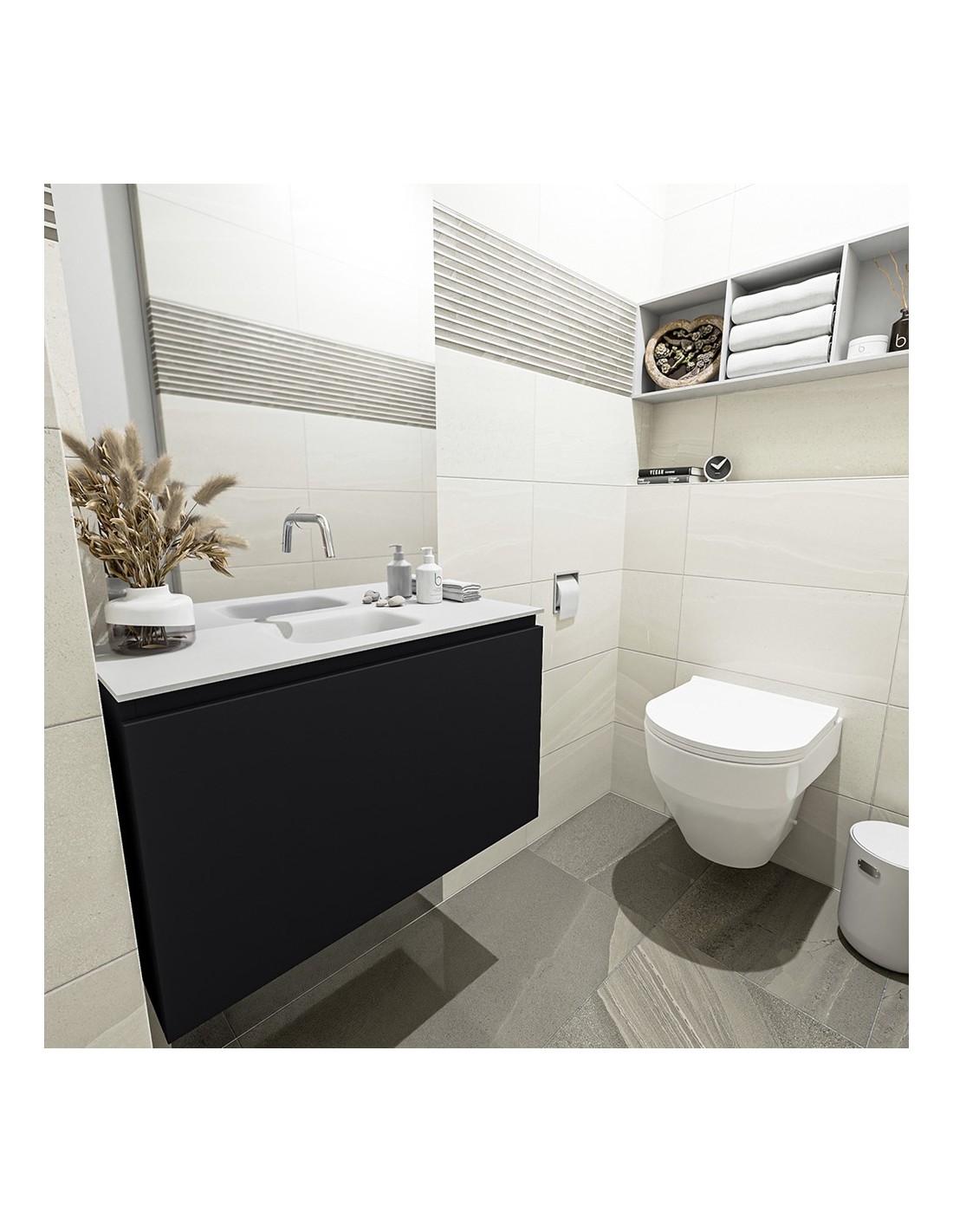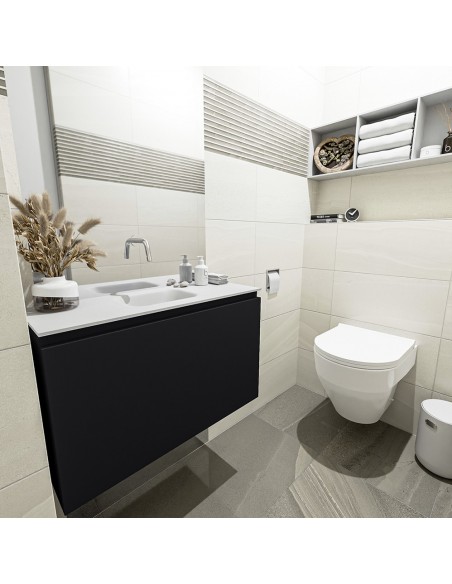 OLAN Komplet badmiljø centreret håndvask B80 cm MDF - Sort/Talkum