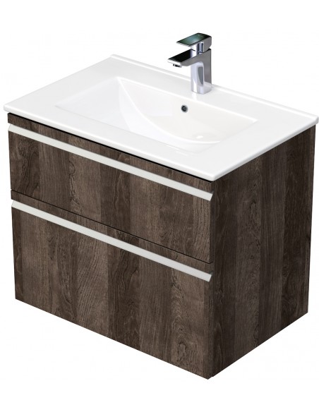 BRAVE Komplet badmiljø med håndvask B71 cm Keramik og MDF - Mørk eg