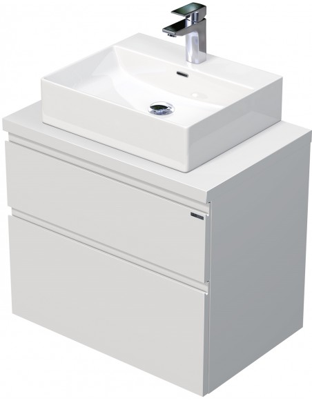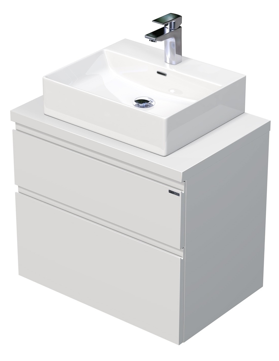 LETTY Komplet badmiljø med håndvask til bordmonteret armatur. Badmiljøet kommer med 2 skuffer med softclose og er fremstillet i MDF. Håndvasken er fremstillet i hvid keramik. Badmiljøet måler 70 cm i bredden. Det viste armatur medfølger ikke i sættet.