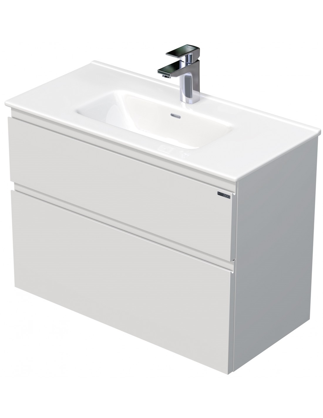 LETTY Mini Komplet badmiljø med håndvask til bordmonteret armatur. Badmiljøet kommer med 2 skuffer med softclose og er fremstillet i MDF. Håndvasken er fremstillet i hvid keramik. Badmiljøet måler 80 / 81 cm i bredden. Det viste armatur medfølger ikke i sættet.