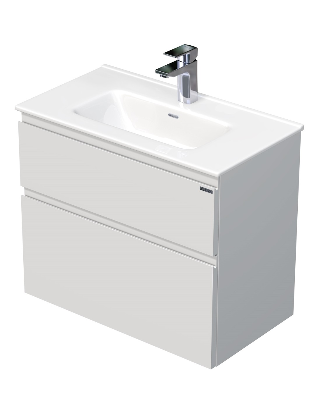 LETTY Mini Komplet badmiljø med håndvask til bordmonteret armatur. Badmiljøet kommer med 2 skuffer med softclose og er fremstillet i MDF. Håndvasken er fremstillet i hvid keramik. Badmiljøet måler 70 / 71 cm i bredden. Det viste armatur medfølger ikke i sættet.