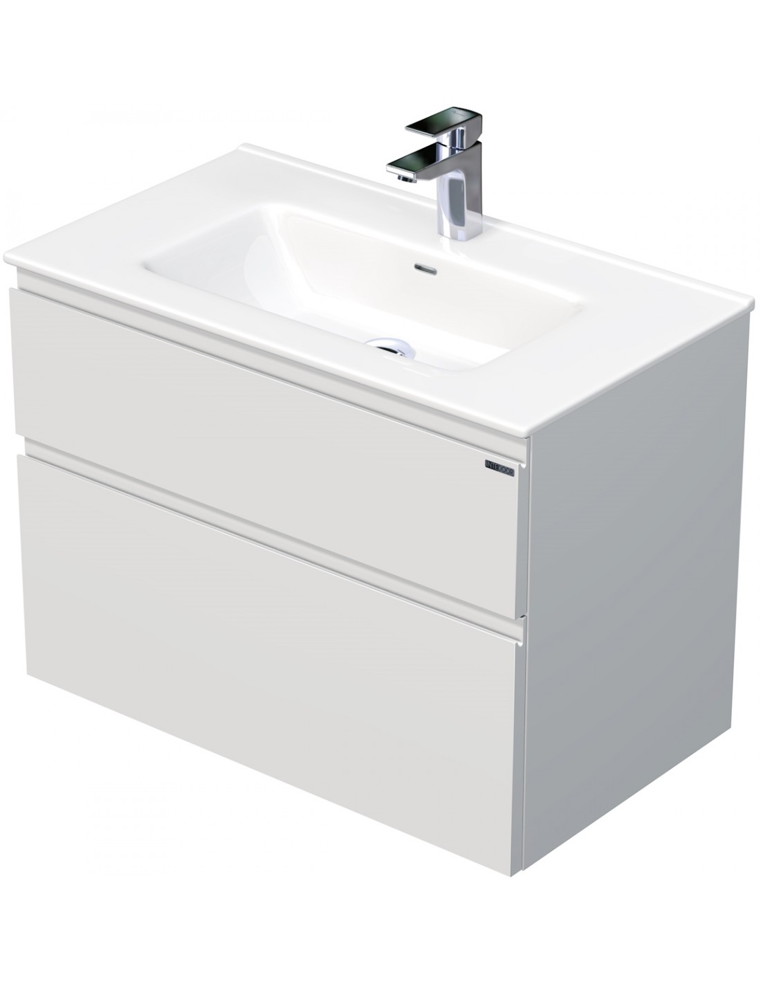 LETTY Komplet badmiljø med håndvask til bordmonteret armatur. Badmiljøet kommer med 2 skuffer med softclose og er fremstillet i MDF. Håndvasken er fremstillet i hvid keramik. Badmiljøet måler 80 / 81 cm i bredden. Det viste armatur medfølger ikke i sættet.